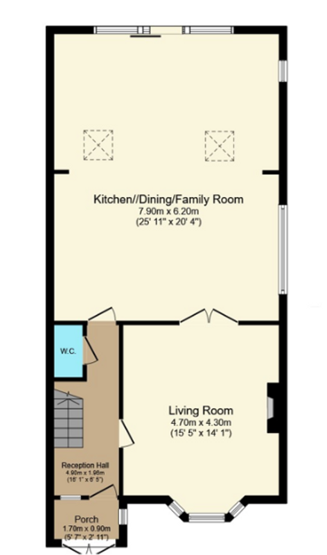 This property has its accommodation spread over two levels however the attic is also floored and has a stira for easy, almost everyday, access. The flow of the rooms offers an entrance porch with sliding glazed patio doors, a beautifully tiled reception hall, a lovely living room set to the front of the home with deep bay window and feature fireplace complete with stove fitted. A guest WC is located off the reception hall. The rear of the property is taken up with one magnificent room full of natural light by the use of wall to wall glazing to the rear, windows to the side as well as roof windows. This room is home to multiple of functions with the kitchen, dining room, family room, utility space all given their own defined spaces. The upstairs of No 21 Bellevue Heights is home to four bedrooms all with the benefit of extensive fitted robes. Three of the four rooms are doubles and the main bedroom has its own en-suite. A family bathroom which was renovated in 2018 completes the accommodation at this first floor.