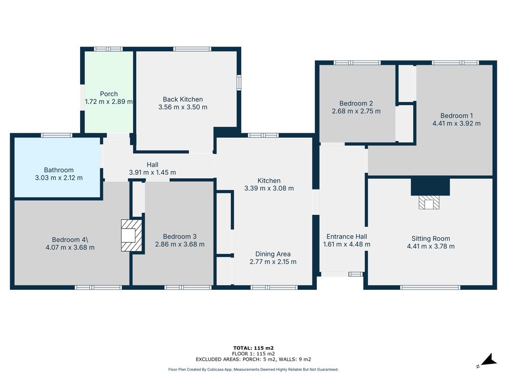 Accommodation includes: Entrance Hall, Sitting Room, Kitchen/Dining Room, Back Kitchen, 4 Bedrooms, Bathroom. Range of outbuildings to the rear.