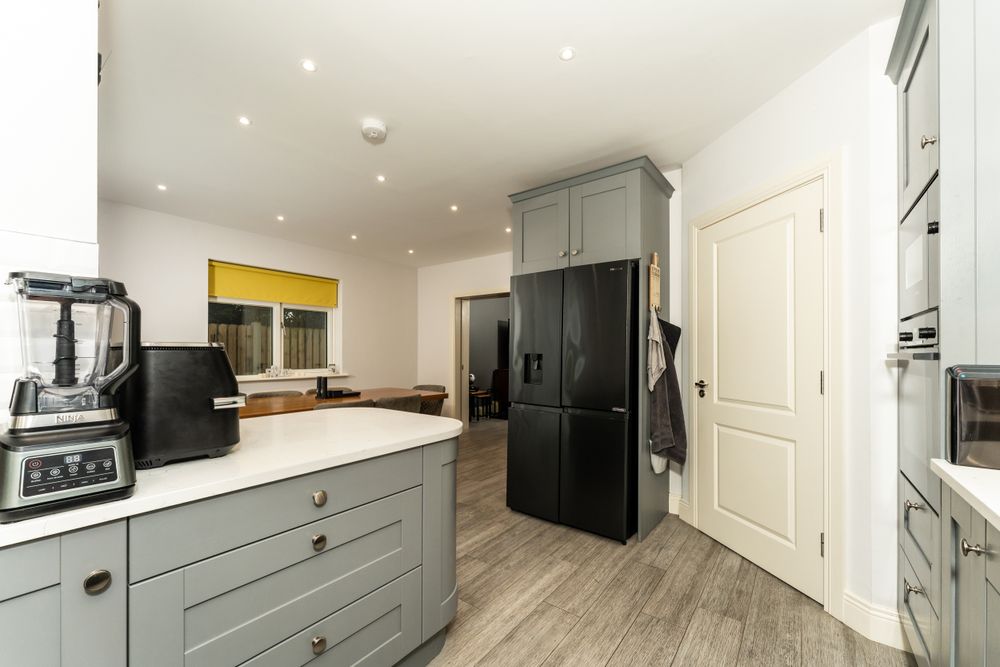 8 Hale Court represents a spacious, modern home, meticulously maintained throughout, with an internal floor area of c.142 sq.m. or 1525 sq.ft. Offering the perfect blend of comfort, style and practicality this property is very well appointed with four double bedrooms and particularly well proportioned living space. A generously sized living room flows into a bright, airy dining area through sliding pocket doors and on to a modern, fully equipped kitchen with quartz countertop and ample storage space. Externally the property benefits from a large insulated timber frame outbuilding, wired for heating, ideal for working from home or recreation purposes.