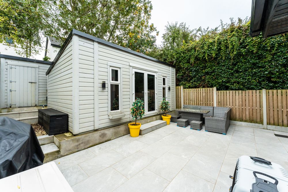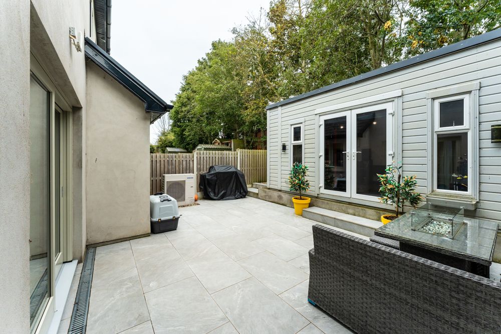 Cobble lock approach, off street parking, secure fencing with side entrance gate, porcelain patio to rear with south facing orientation, garden room/GYM and garden shed