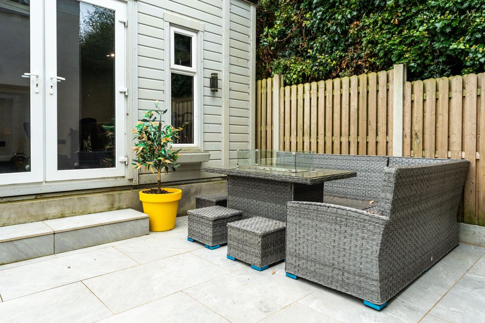 The large south facing porcelain patio is easily maintained, not overlooked and faces south. Secured on all sides by means of concrete posts, wooden panels and secure side entrance.