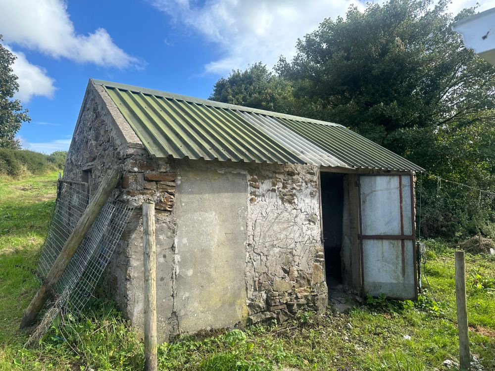 Stone built with galvanised roof, two dog pens, concrete floor, electricity