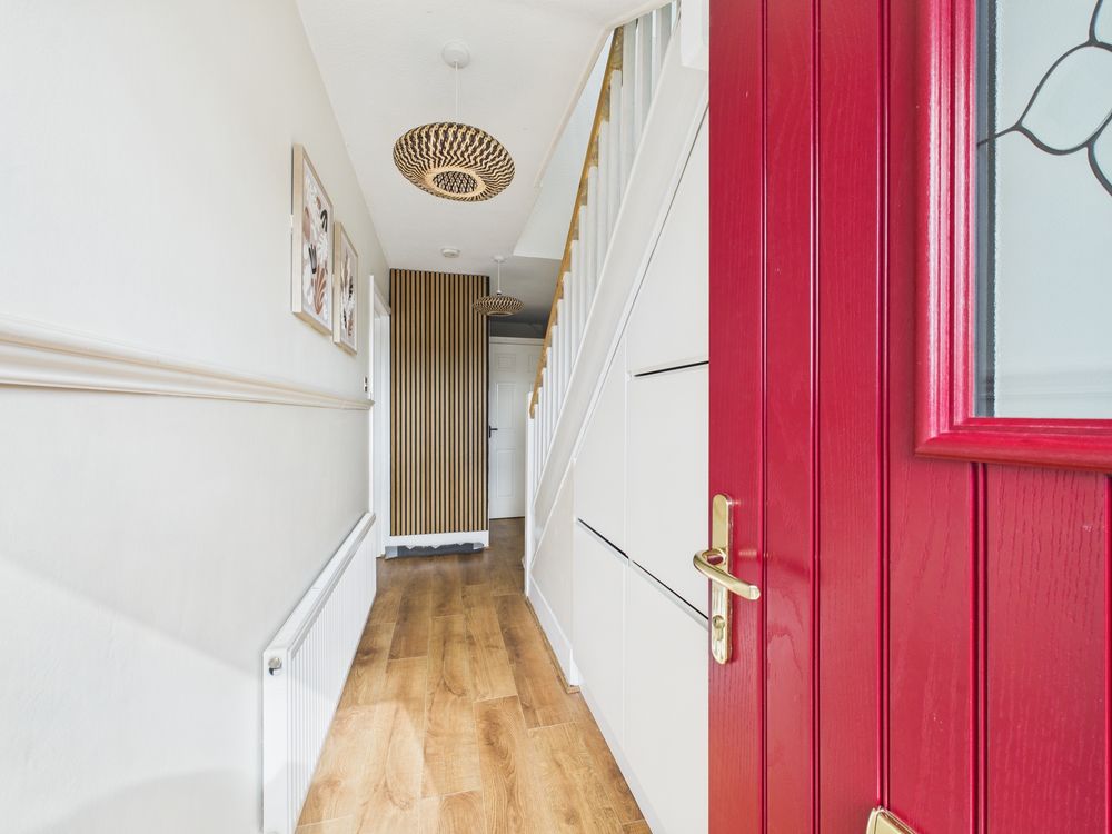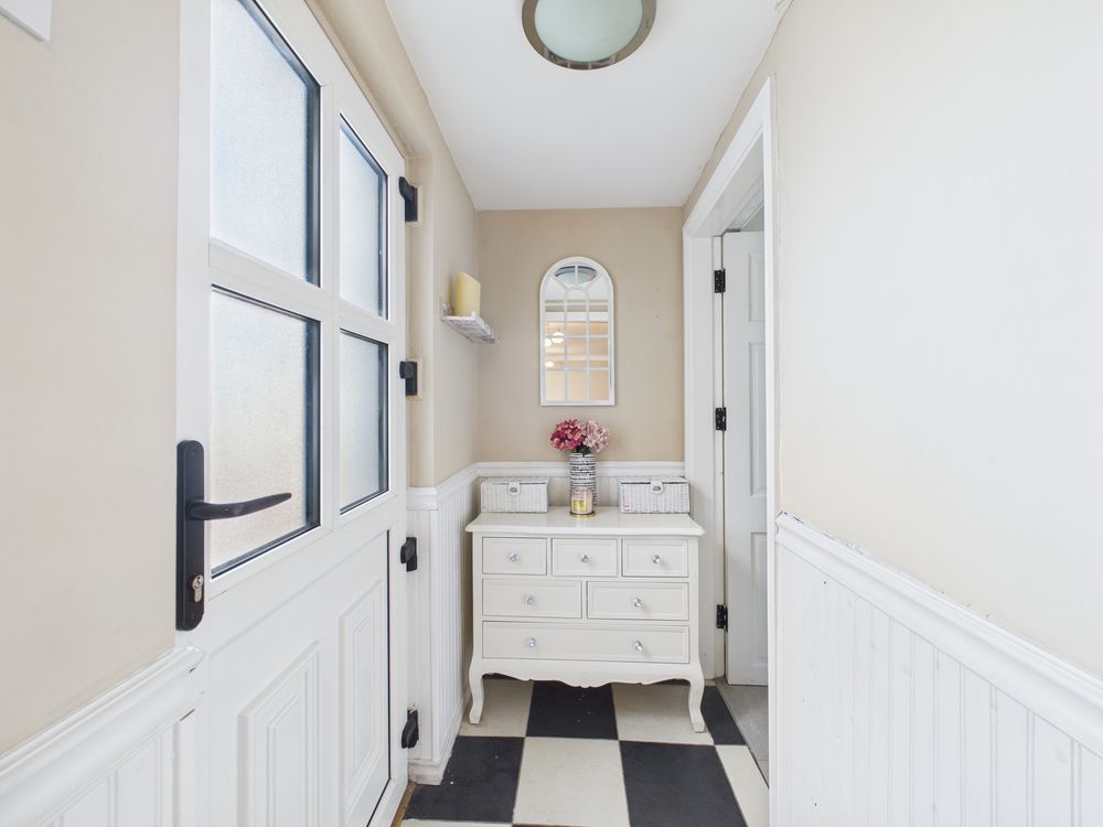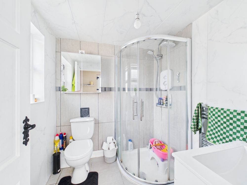 The impressive rear hall leads to a beautiful shower room which is beautifully tiled in a modern style.