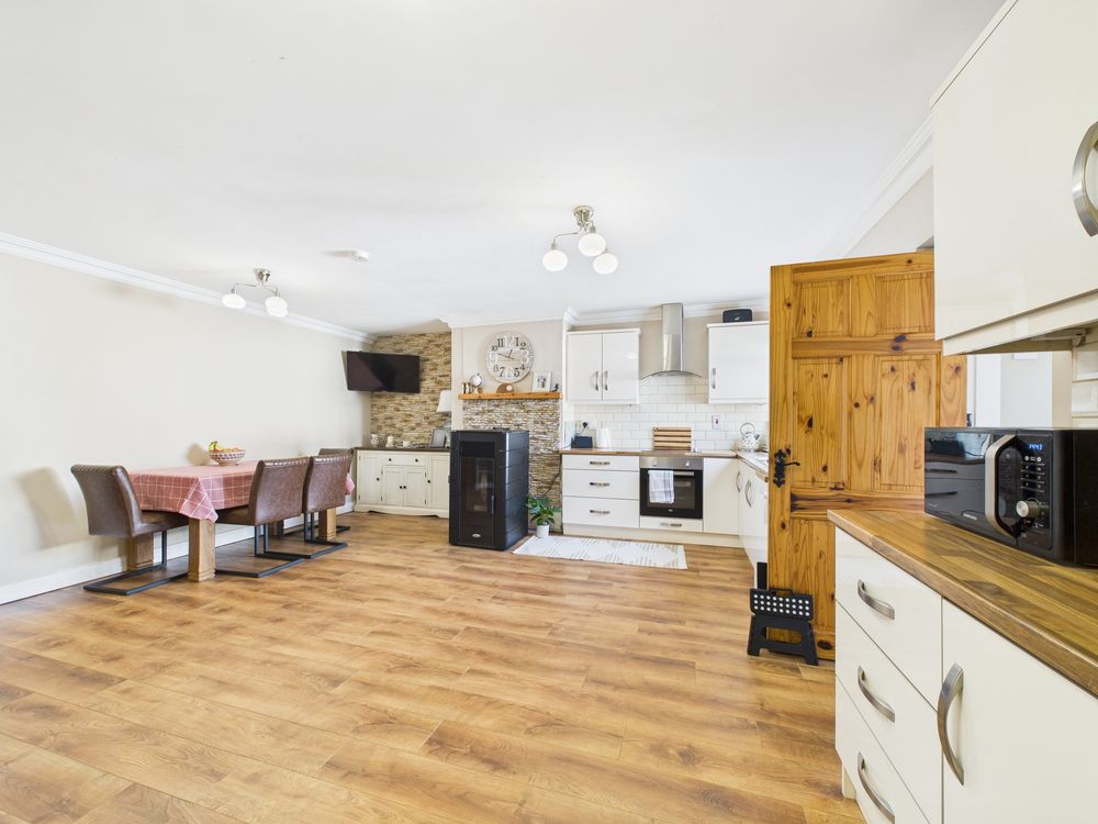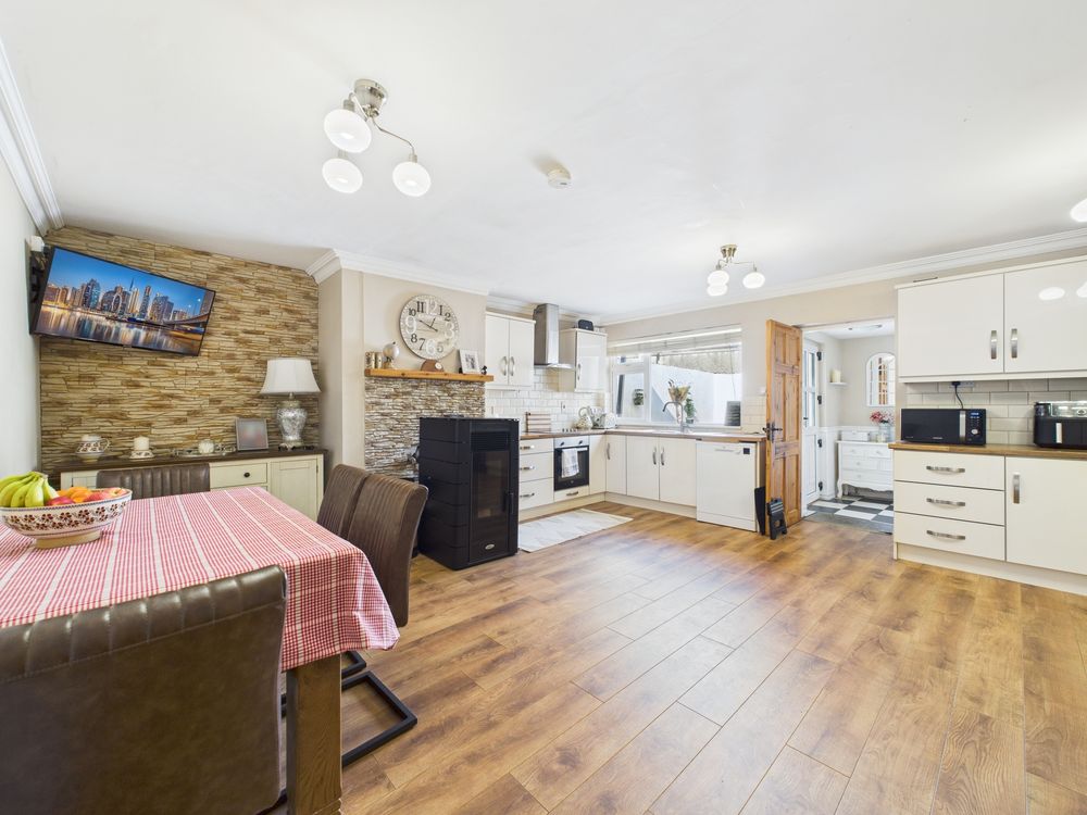 On the ground floor the welcoming entrance hall leads to an attractive sitting room which enjoys a large picture window overlooking the front garden. The large kitchen dining room has been massively extended and offers the perfect space for a growing family. With a quality fitted kitchen and a beautiful wood pellet stove, this room truly is the heart of this magnificent home.
