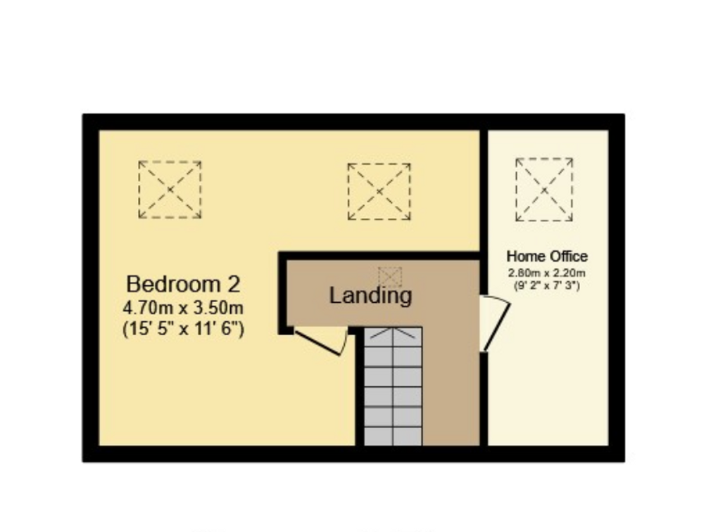 Located at the top of the house is a bright, quiet home office space taking its natural light from a Velux window. This room is finished with carpet and enjoys a fitted desk as well as fitted storage. Additional storage is catered for in the eves.