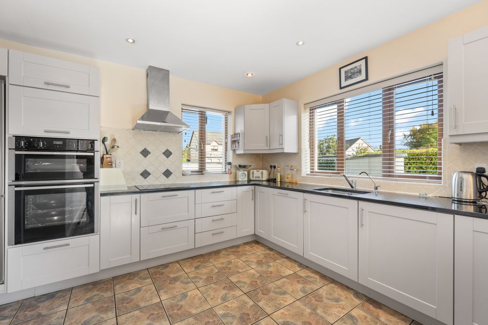 Set at the entrance to the park and commanding a private corner position, no 5 Riverbank is a lovely four bedroomed detached family home extending to approximately 177.79 sqm (1,914 sq ft). Surrounded by the maturity of trees planted when the scheme was developed No 5 is now reaping the rewards of ultimate privacy with a setting looking directly south. The park now has well developed greens ideal for children gathering for playtime. Built in 2004 and ahead of its time the property is fitted with underfloor heating at ground floor level and insulated to tremendous standards. It is easy to see how it returns an impressive B3 energy rating. The rooms have individual thermostats so that all can regulate the desired temperature and the addition of a built in stove in recent years adds to the cosiness of this home. The property is well fitted with quality in all of its fittings from the extensive kitchen, tiling and sanitary ware.