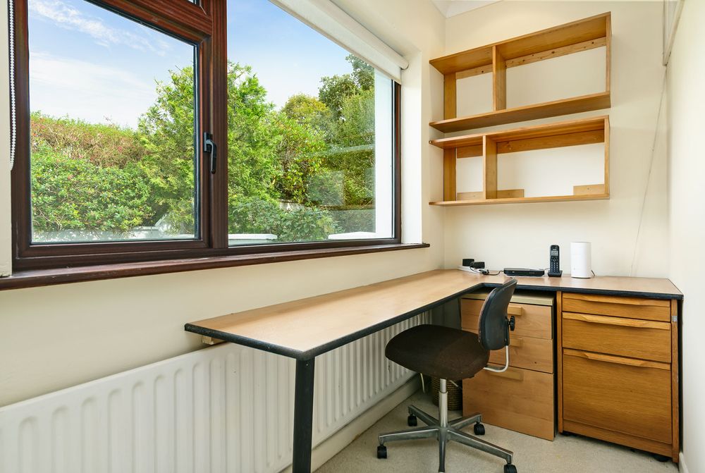 This is open plan to the private office and ensuite. This bedroom has excellent Sliderobes fitted, carpet flooring and enjoys a beautiful aspect overlooking the hills and the trees of the Deerpark. This room leads to the office area.