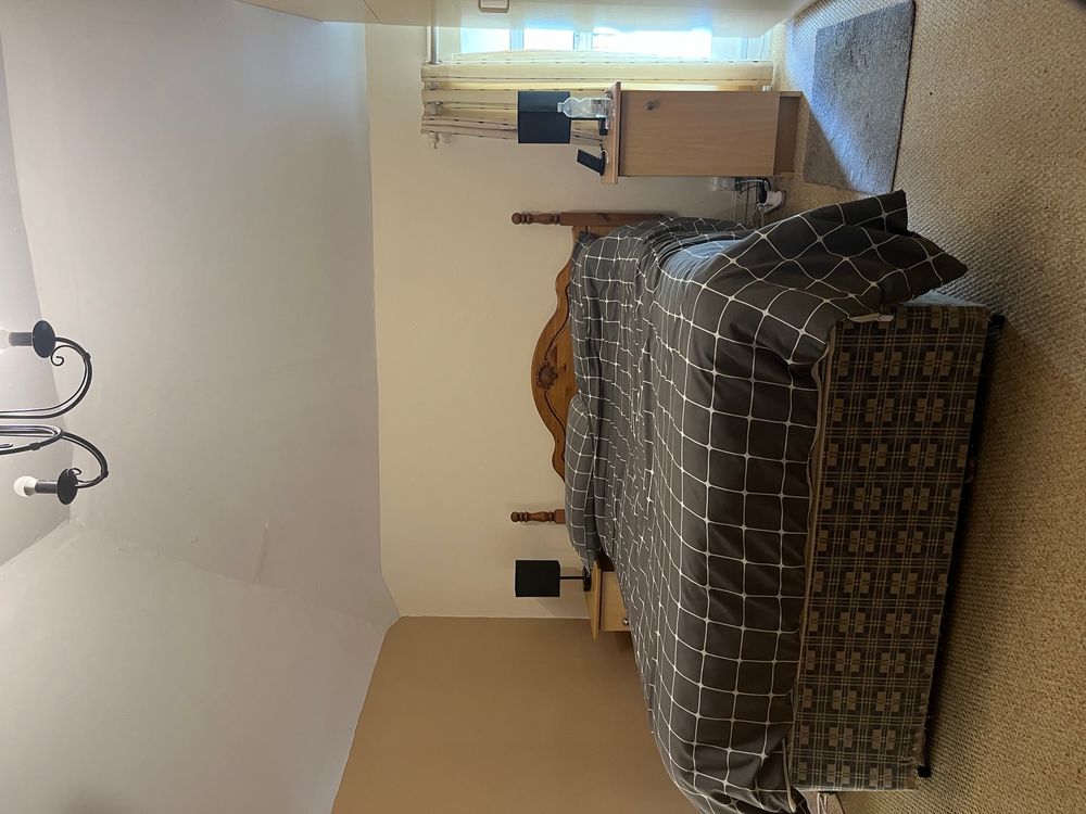 Bedroom 1 is off the sitting room with solid timber floor, built in wardrobes
