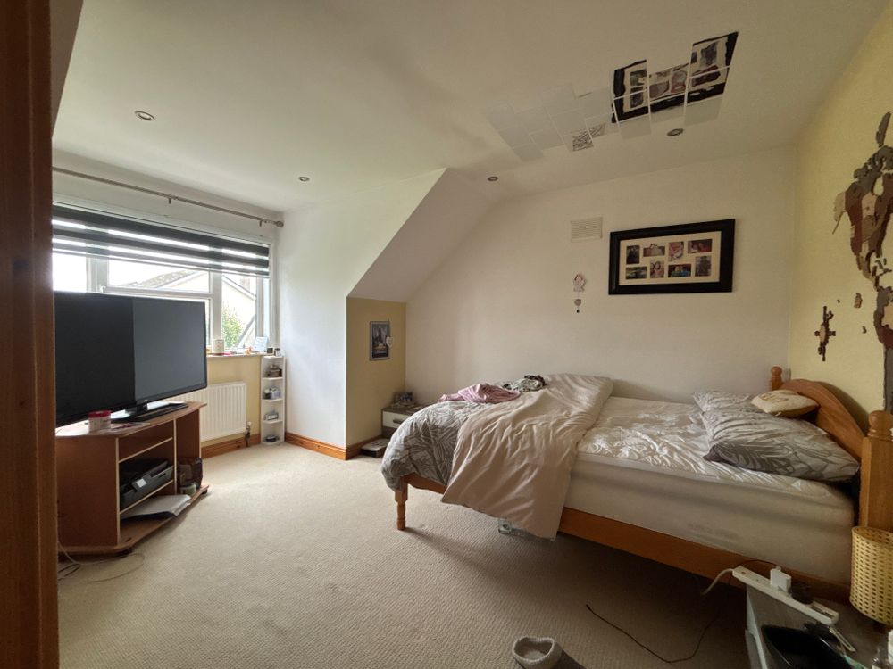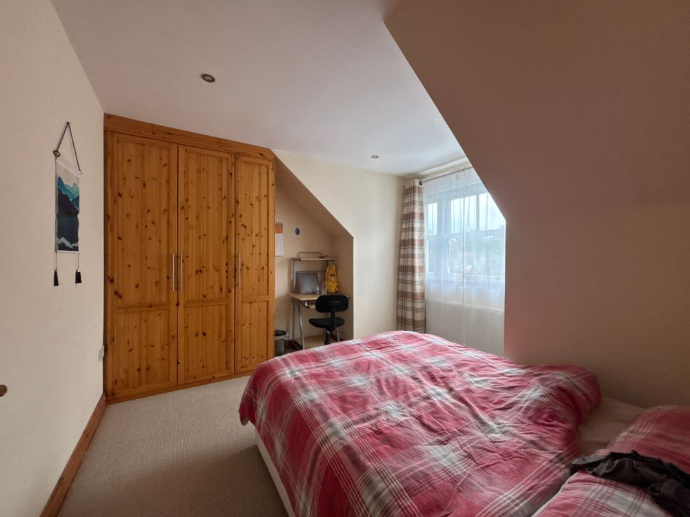 Carpet flooring, built in wardrobes and window overlooking the front and rear garden