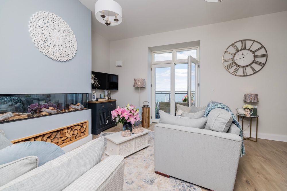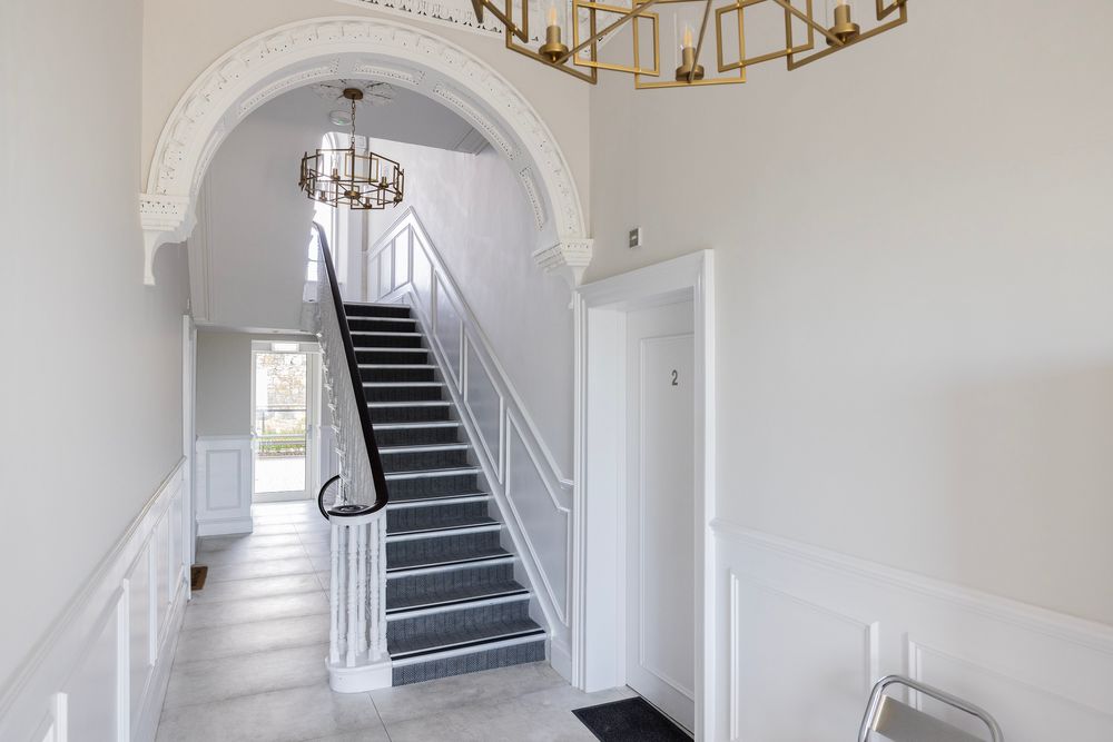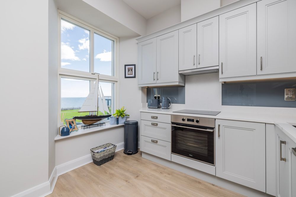 Apartment 4 Ulysses in historic Montebello Terrace is the ultimate rare gem which combines his unique setting with a modern home finished to stunning high standards and fine detail. The historic Ulysses building was afforded a complete as new refurbishment in 2022. This home is now immaculately presented for sale. Upon entering the building, one is immediately met with a wonderful bright and airy feeling. The foyer boasts original period detailing in pristine condition and beautifully refurbished. Apartment number 4 is located at a secure first floor location featuring two private balconies offering the ultimate dual aspect. A welcoming hallway set the tone perfectly and leads to a wonderful open plan kitchen diner living room with direct access to an impressive balcony with break taking sea views. The elegant living space opens into the kitchen area which is well equipped with bespoke hand crafted cabinetry. The apartment features a luxurious bedroom, with a private west faing second balcony plus an opulent bathroom with stunning tiling and high class sanitary ware.