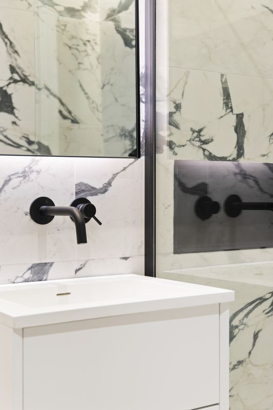 This sumptuous primary suite features bespoke cabinetry providing a walk in wardrobe offer an abundance of storage solutions with feature strip lighting illuminating the area perfectly. A luxurious ensuite is fully tiled with stunning porcelain tiles in classic black and white, superior sanitary ware includes wc, wash hand basin with built in vanity unit below providing ample storage for all your bathroom needs, large shower facility with wonderful tropical shower overhead teamed with a dual shower head lower down plus a recessed shelving unit provides a home for your showering needs. The room is well lit by recessed down lighters plus mood strip lighting.