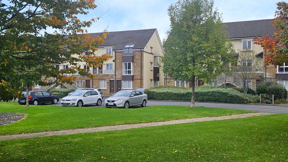 This is an own door apartment. The front overlooks a large green area which is tastfully landscaped. The rear overlooks the developments tennis court. Access is via an exterior stair and balcony (currently being renewed). This access is shared by just 6 apartments.