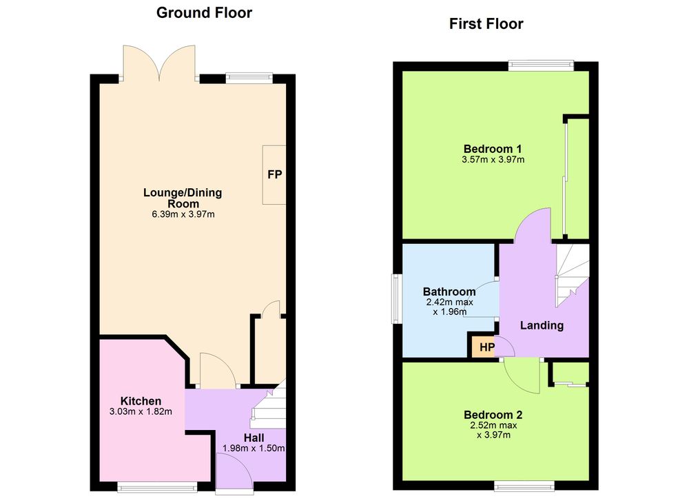 The accommodation briefly comprises a welcoming entrance porch, kitchen, a spacious living room with feature fireplace and direct access to the rear garden. Upstairs, there are two generously sized double bedrooms with built-in slide robes and a modern family bathroom.