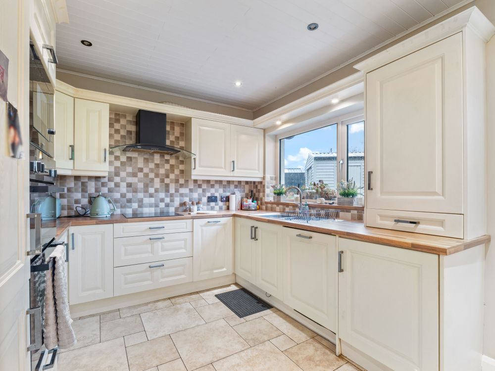 Finished with tiled flooring throughout and has a fully fitted kitchen complete with integrated appliances. There is a double oven, a fitted microwave, integrated fridge freezer, integrated dishwasher and it has a fitted hob and extractor.