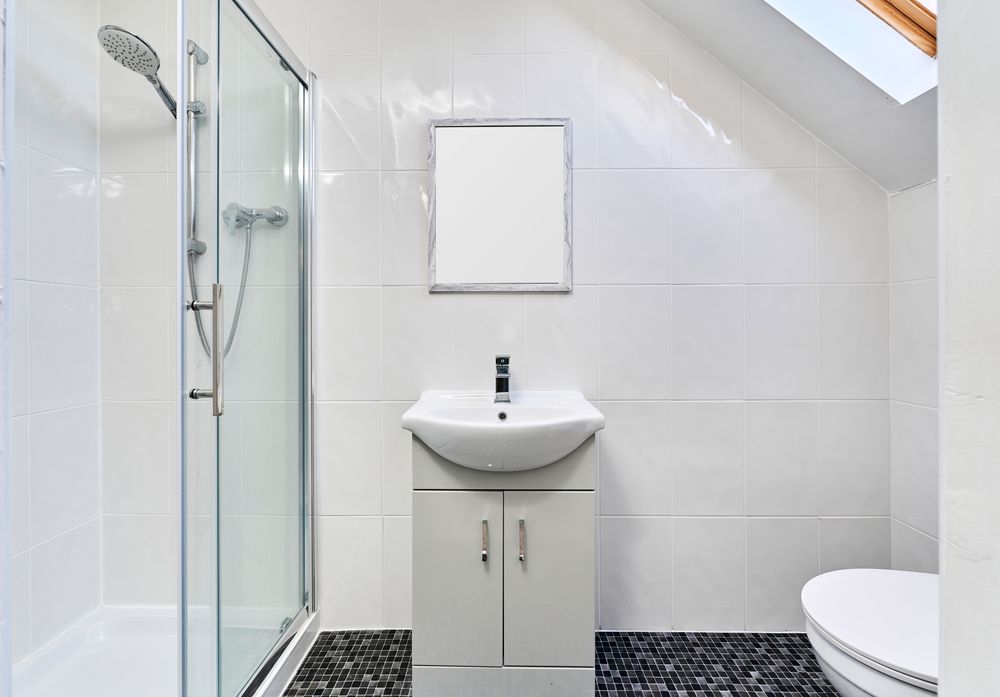 fully tiled with walk-in shower, wc & whb