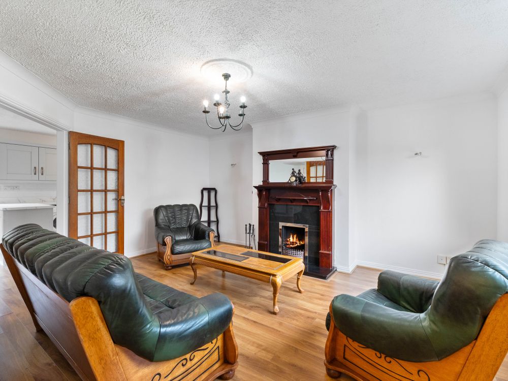 Finished with laminate wood flooring, this room has an open fireplace with a back boiler fitted to the fireplace. It has double french doors leading to the spacious kitchen/dining room.