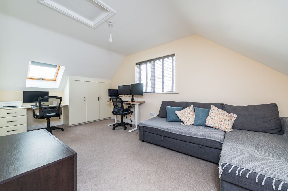 Porcelain tiles, built in ground and eye level units, stainless steel sink, Bosch electric oven, whirlpool hob, integrated fridge freezer, bosch dishwasher, under stairs utility room, french doors to rear garden.