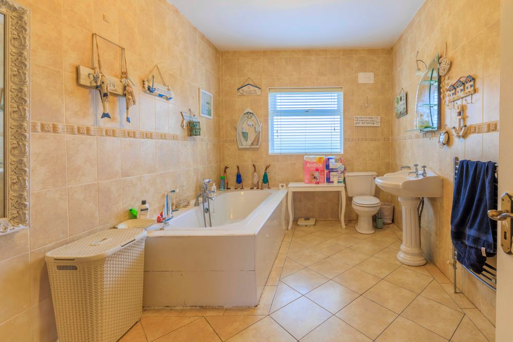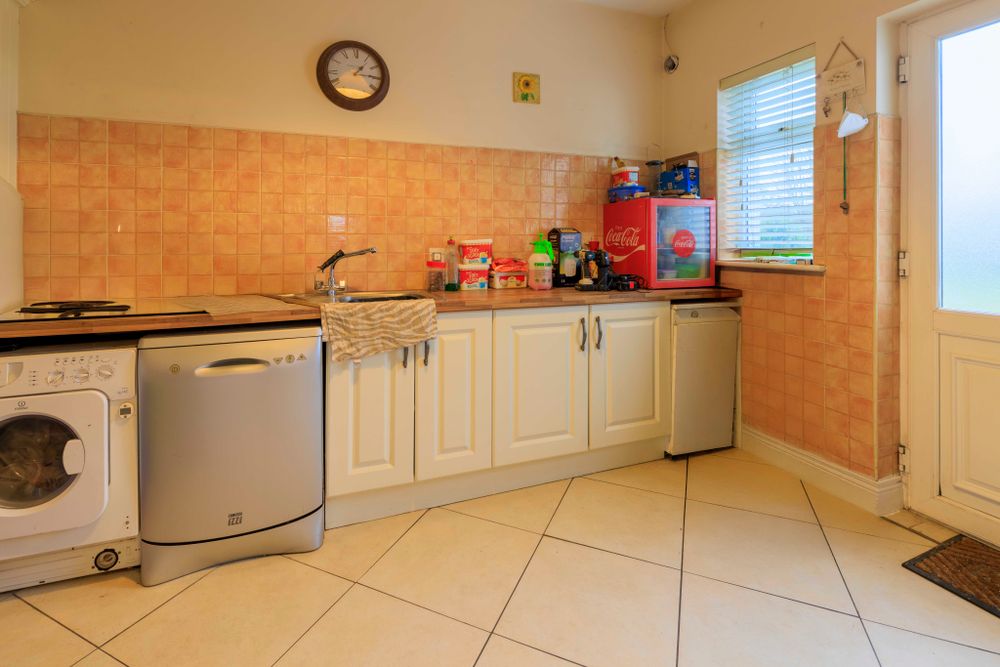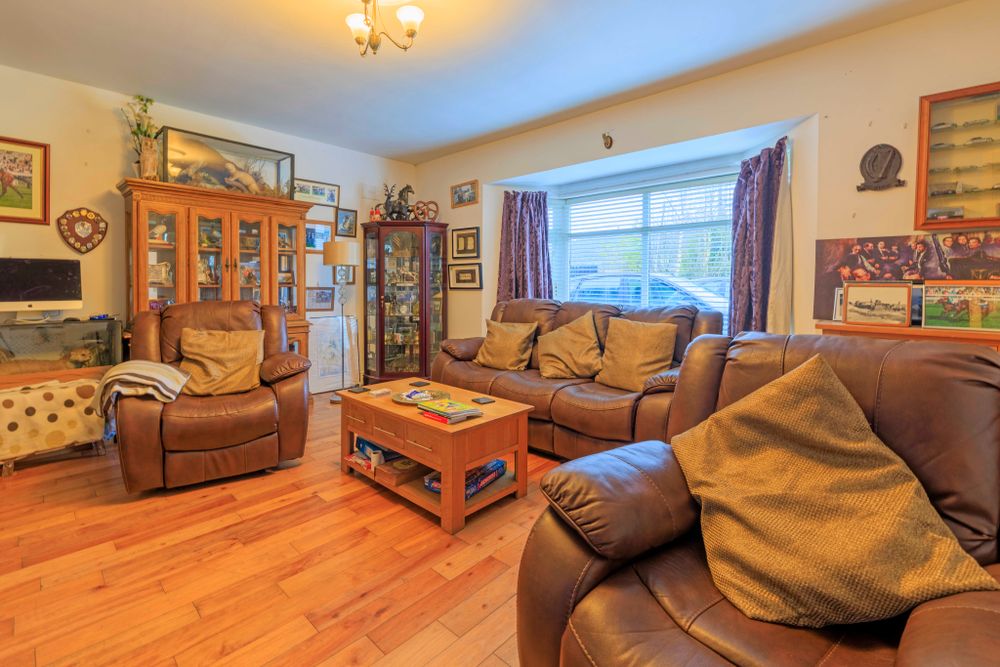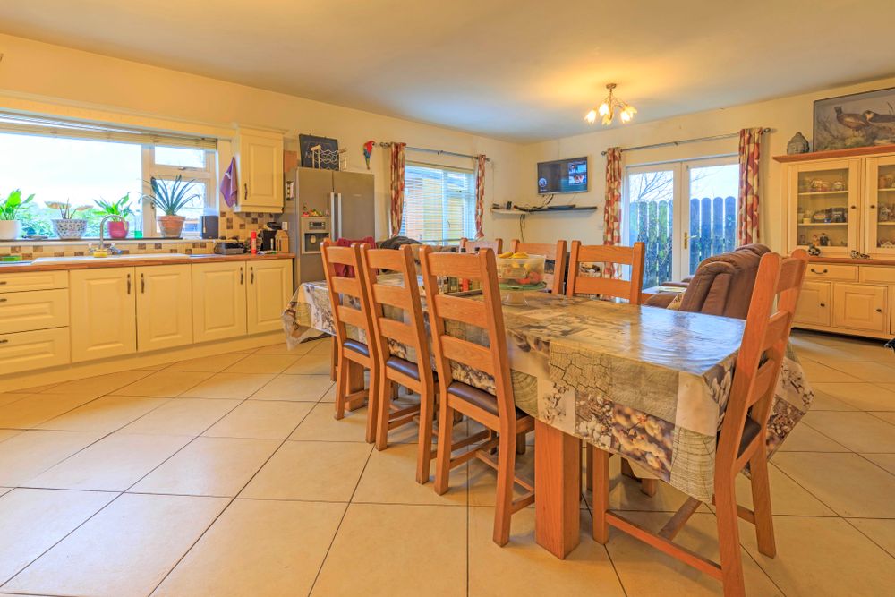 Internally, the bungalow is well-proportioned and filled with natural light, offering flexible living and bedroom accommodation to suit a variety of needs. The layout comprises an entrance hall, comfortable living room, large kitchen/dining area, utility, family bathroom, and four bedrooms (2 with en-suite bathrooms). There is a stairs to the first floor level which may be suitable for conversion, with the relevant planning approval.