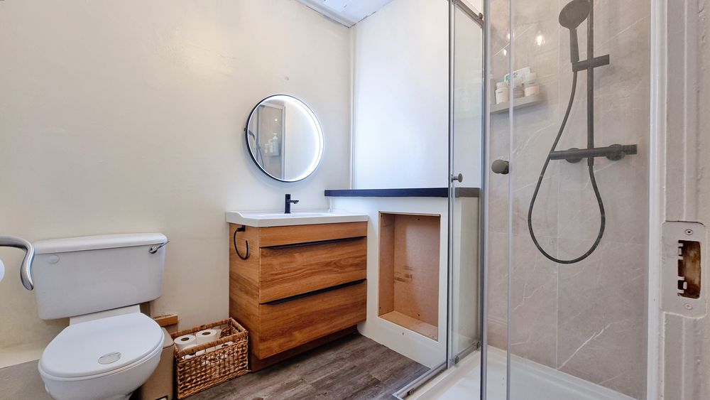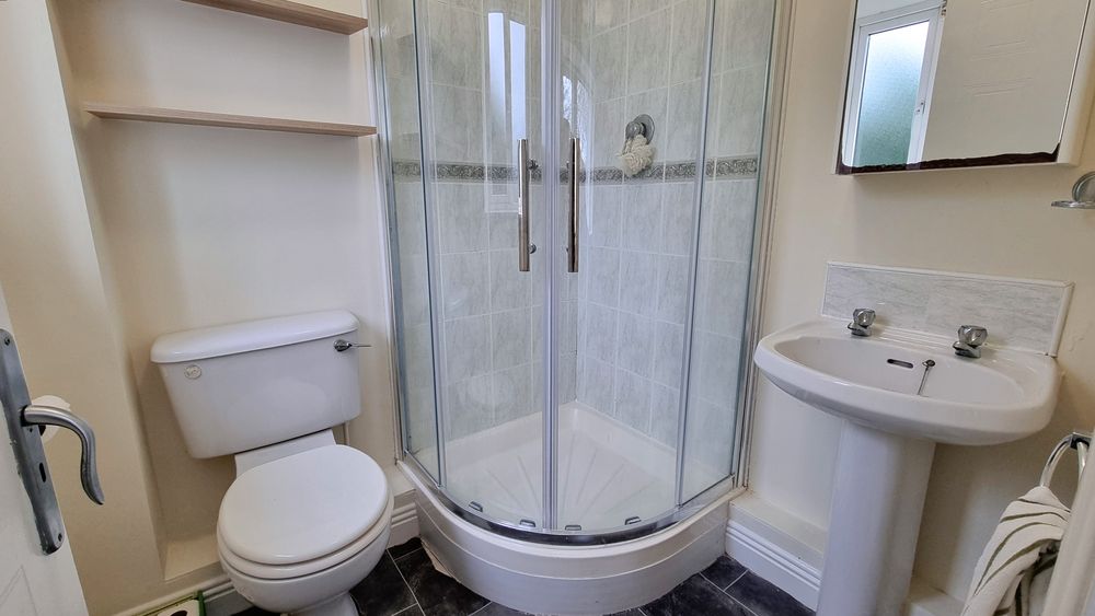 Renovated Bathroom 2.00m x 2.04m with shower, wc, whb, tiled