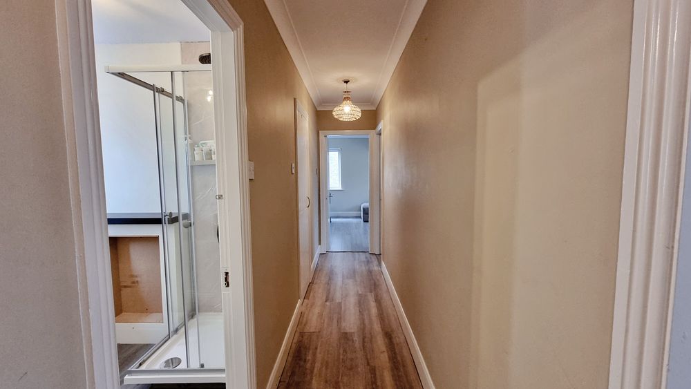 Entrance Hallway 5.46m x 0.95m with storage presses
