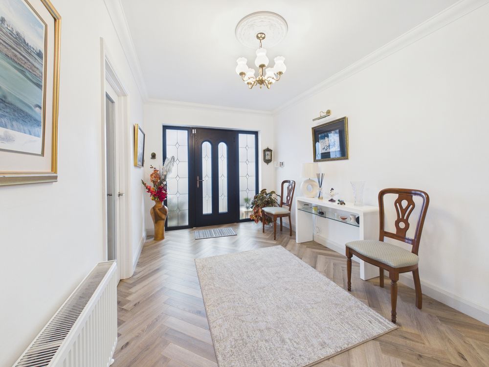Approached by a sweeping tarmac driveway, the property immediately impresses with its elegant façade and landscaped surroundings. Internally, the accommodation is bright, spacious and thoughtfully laid out to cater for modern family living. Multiple reception areas provide flexibility for everyday living and entertaining, while the light-filled conservatory overlooks the gardens and offers a wonderful additional living space year-round.