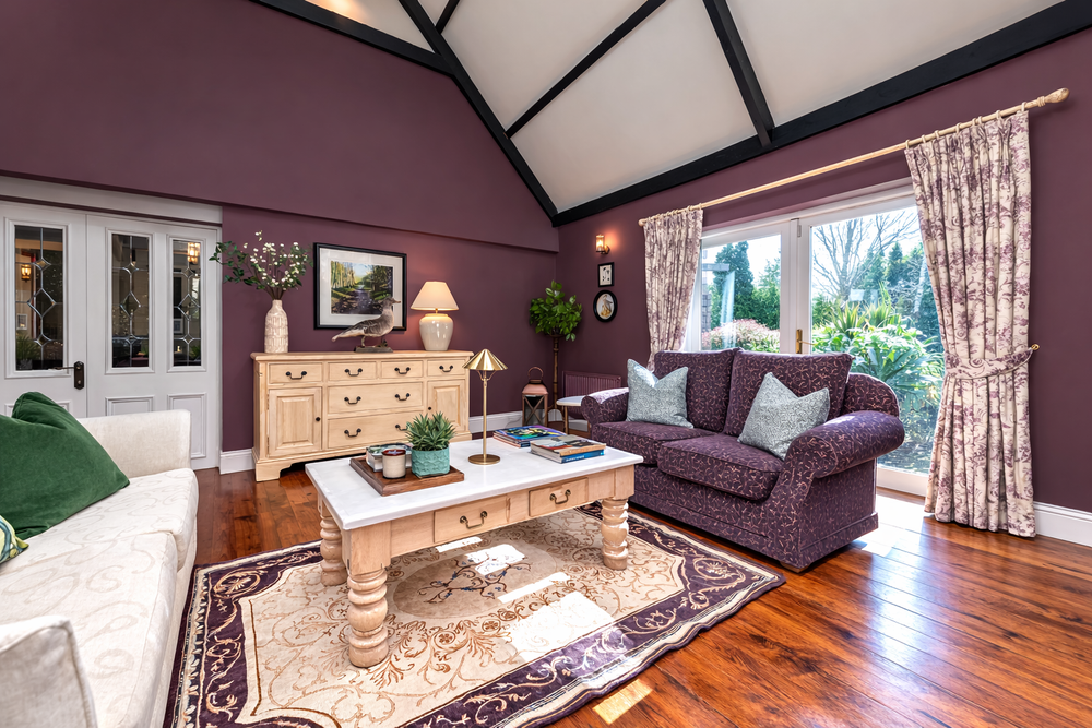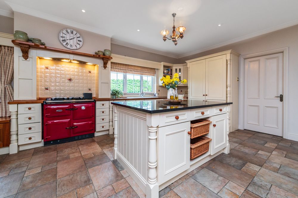 The residence is presented in excellent condition throughout and boasts a number of attractive features including a sandstone and brick façade, double glazed windows, oil-fired central heating with new burner, and a Rayburn oil-fired cooker. The well-appointed cream fitted kitchen with island unit and granite worktop forms the heart of the home. The property provides four generous bedrooms and four bathrooms, creating a spacious and comfortable family residence. Rarely does such a substantial home come to the market so close to the town centre, offering the ideal balance of peaceful seclusion and everyday convenience.