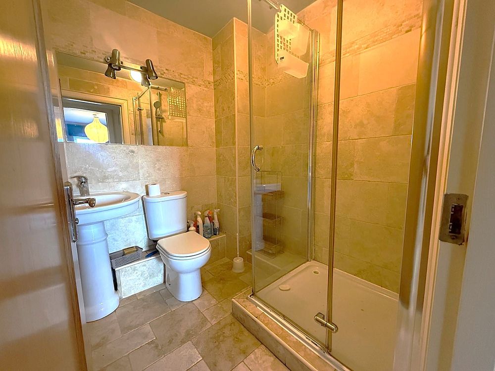 Finished with tiled flooring, fully tiled walls and includes toilet, wash hand basin and large corner shower. Finished to a high standard.