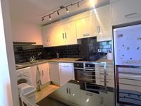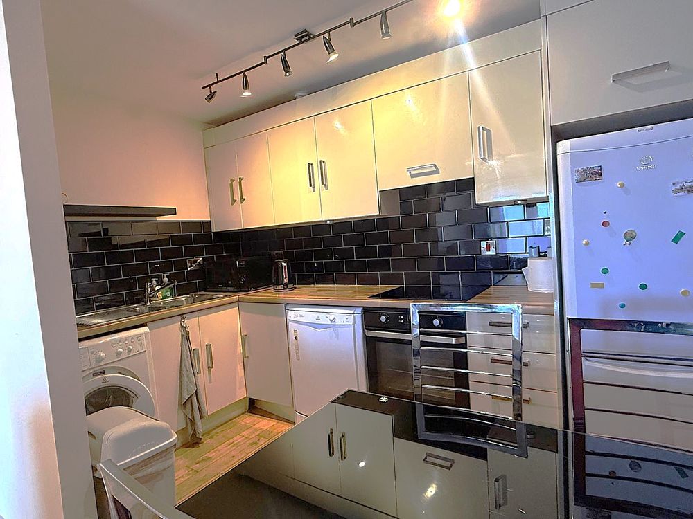 Spacious living area which opens through double French doors which are fully glazed- out onto the large west facing patio. Open plan to kitchen/dining. This area includes the fully fitted kitchen completed with integrated dishwasher. There is also a fridge freezer, oven and hob and a washing machine. There is a timber flooring throughout the area for both the dining area and the spacious living area which opens through double French doors which are fully glazed- out onto the large west facing patio which enjoys some lovely views.