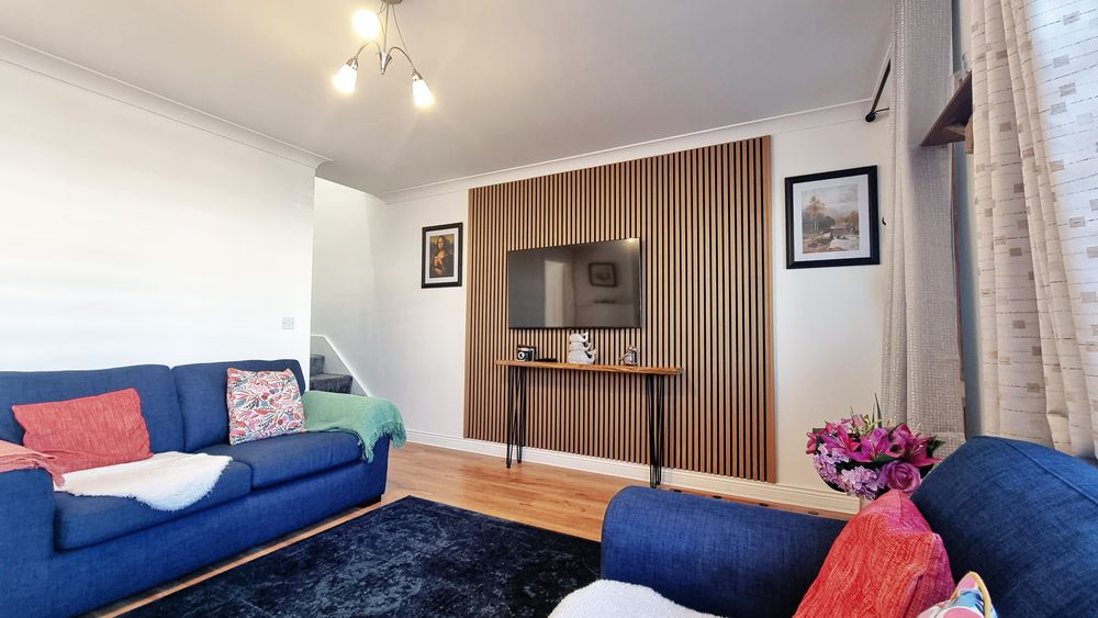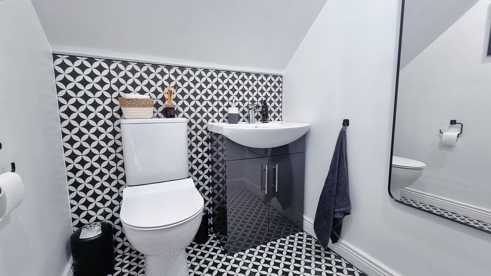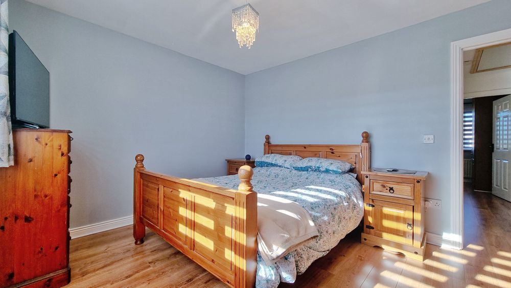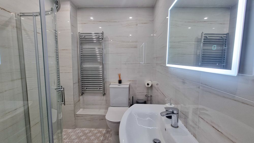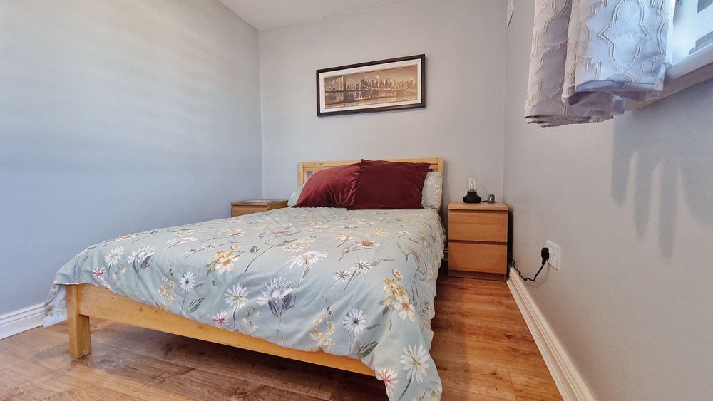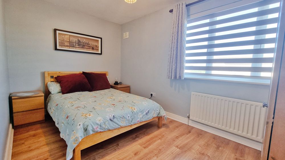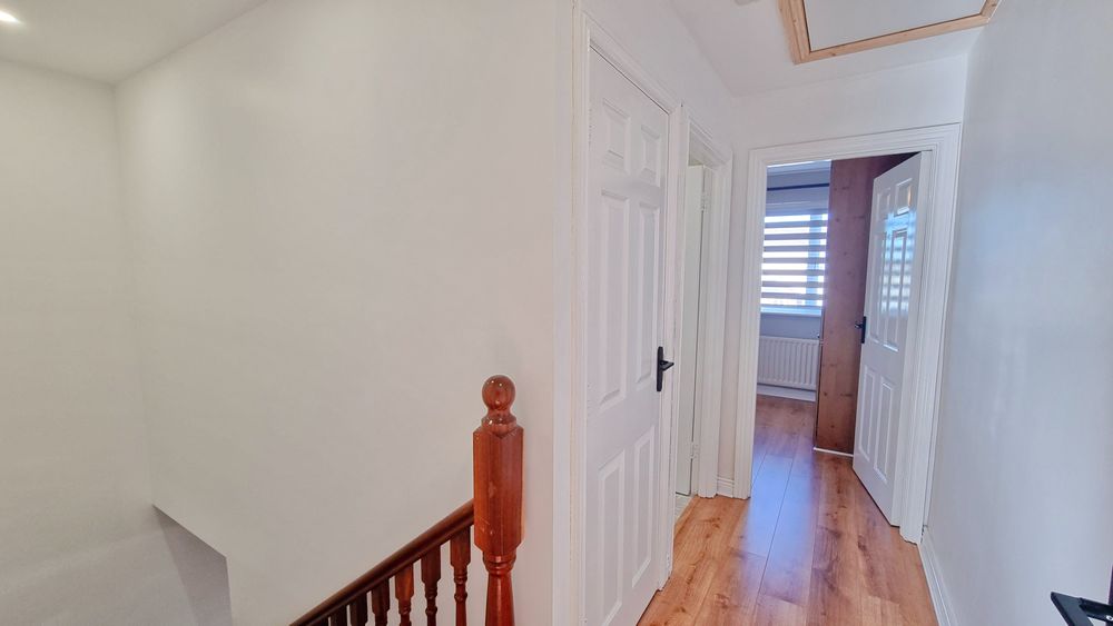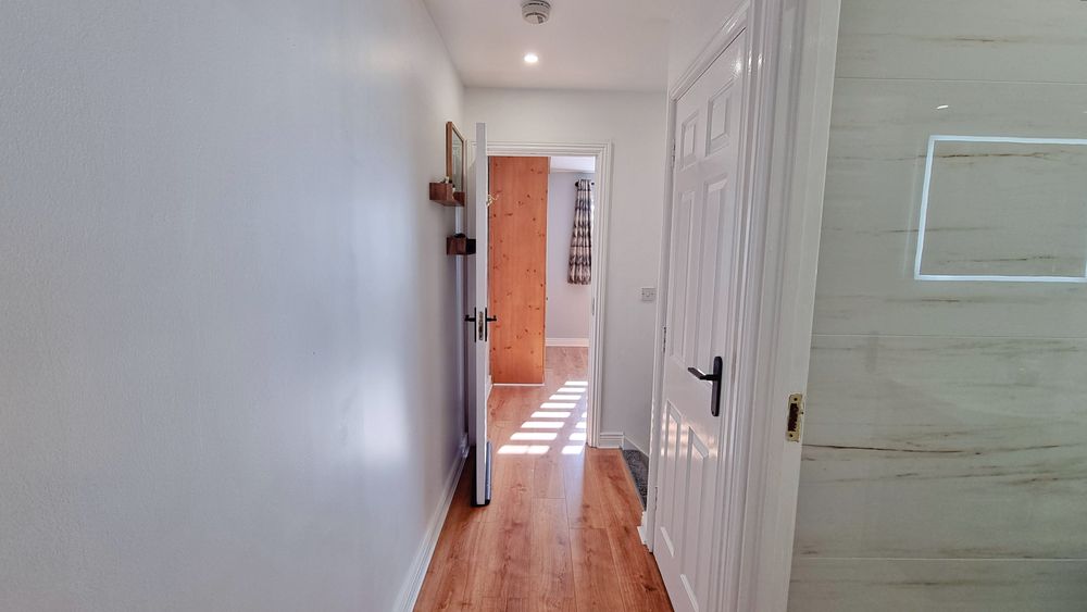 Upstairs, the property features two spacious double bedrooms, both offering ample natural light and comfortable accommodation. The main bathroom is finished to a high standard and is fully tiled in a sleek white finish, giving it a clean, modern feel.