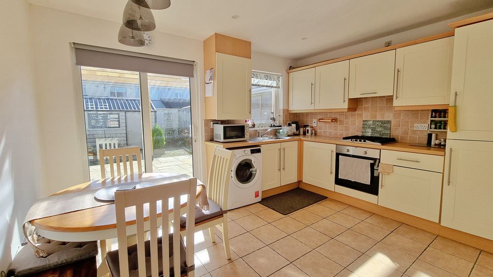 Upon entering the home, you are welcomed into a comfortable sitting area that forms the heart of the house, creating a warm and inviting space to relax or entertain. To the rear of the property, the layout opens into a bright kitchen and dining area, offering a practical and stylish space for everyday living. Also located on the ground floor is the first bathroom, conveniently positioned toward the back of the property.