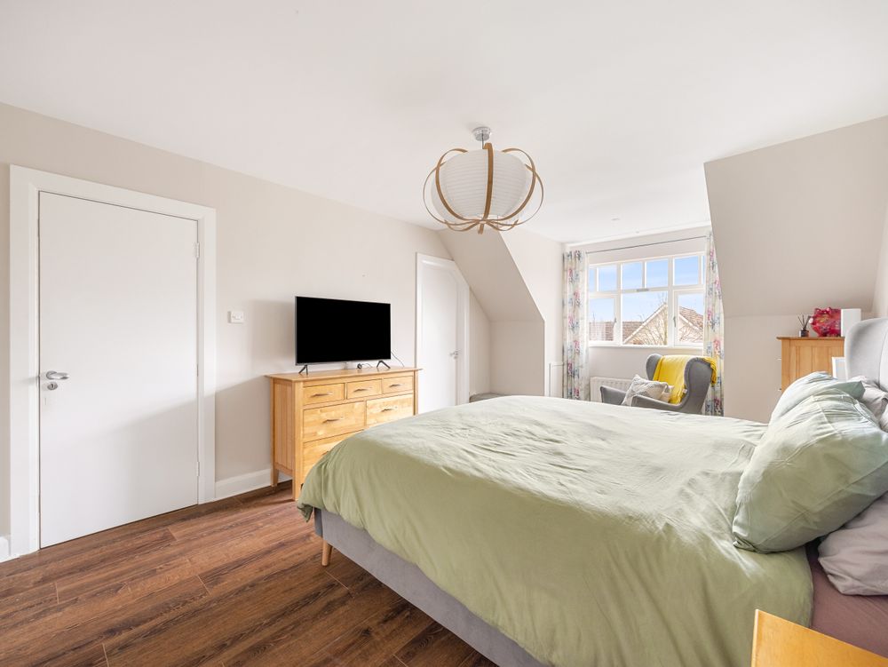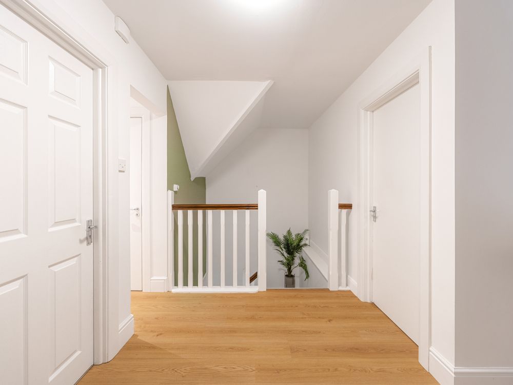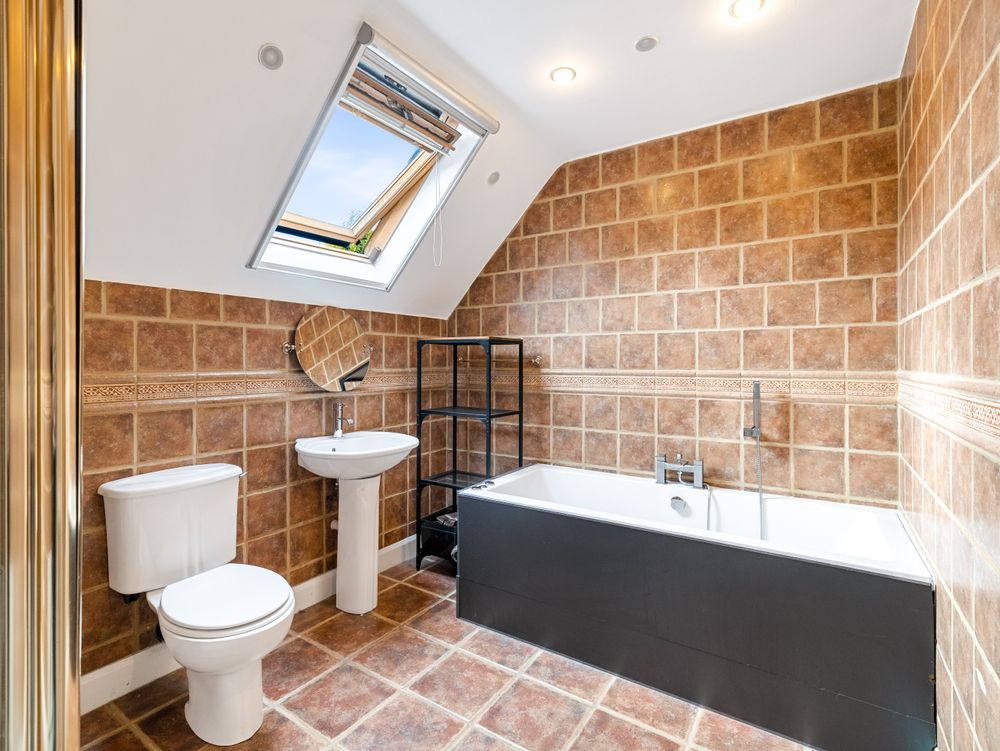 Upstairs the space and style continue with a generous landing leading to three generous double bedrooms flooded with natural light. The main dormer bedroom is complemented by an elegantly tiled ensuite and superb walk-in wardrobe. Then there are 2 further bedrooms, one dormer and one with a large Velux winodw, while the beautifully finished main bathroom is fully tiled and featuring a pristine white ceramic suite with bath. Completing the accommodation on this level, there is access to handy eaves attic storage space.