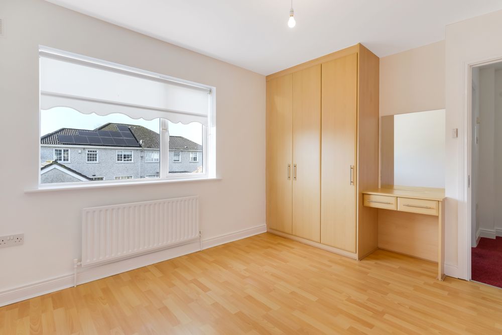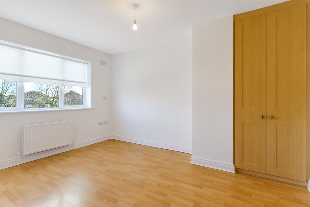front single bedroom with laminate wood flooring, built-in wardrobes, blinds included
