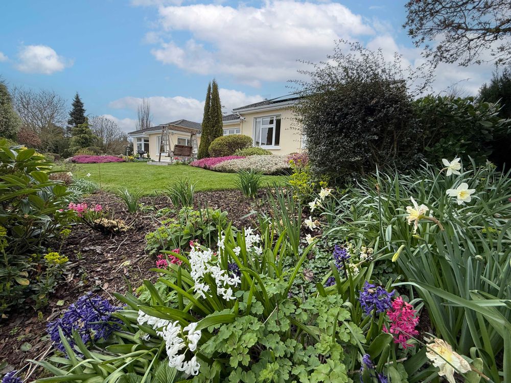 There is year-round interest with winter flowering shrubs, spring bulbs, herbaceous plants and many well-established evergreen and deciduous trees.