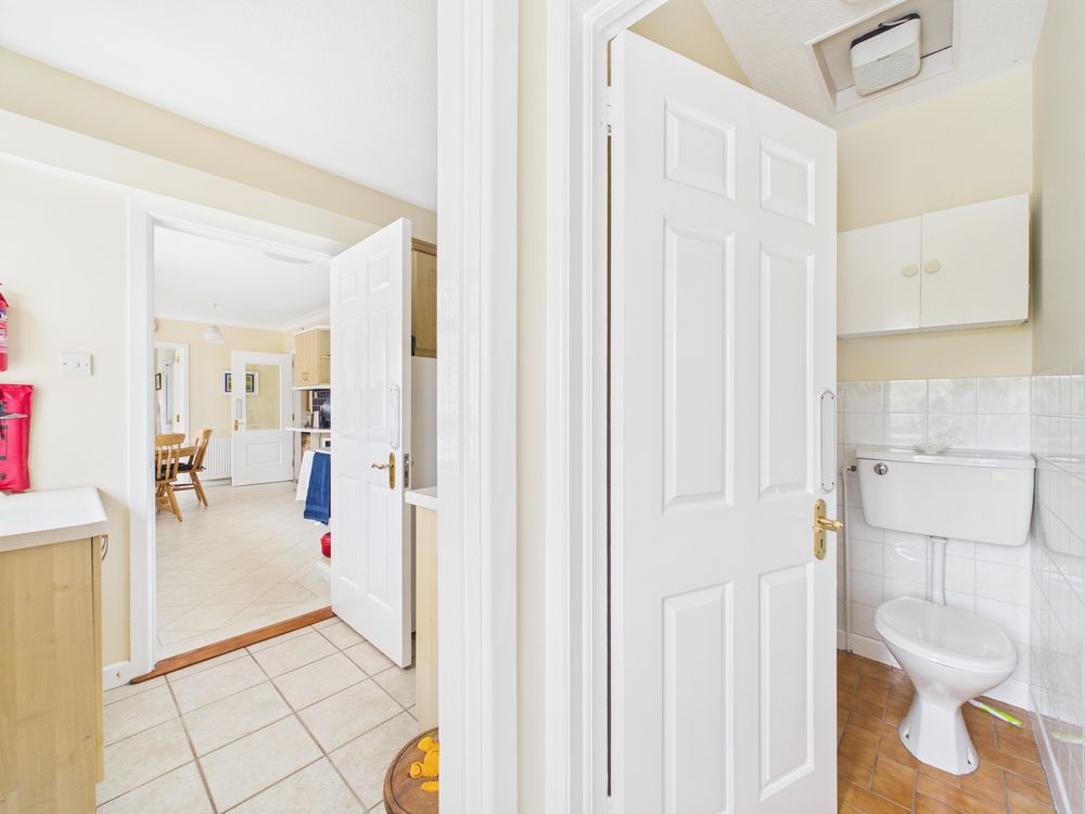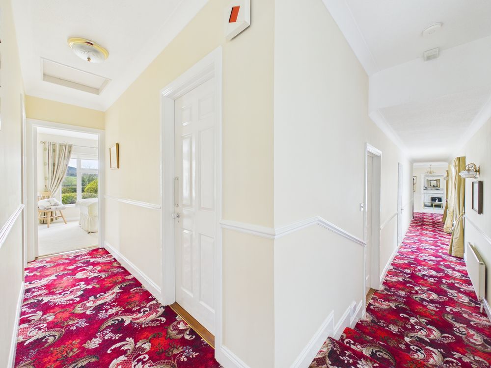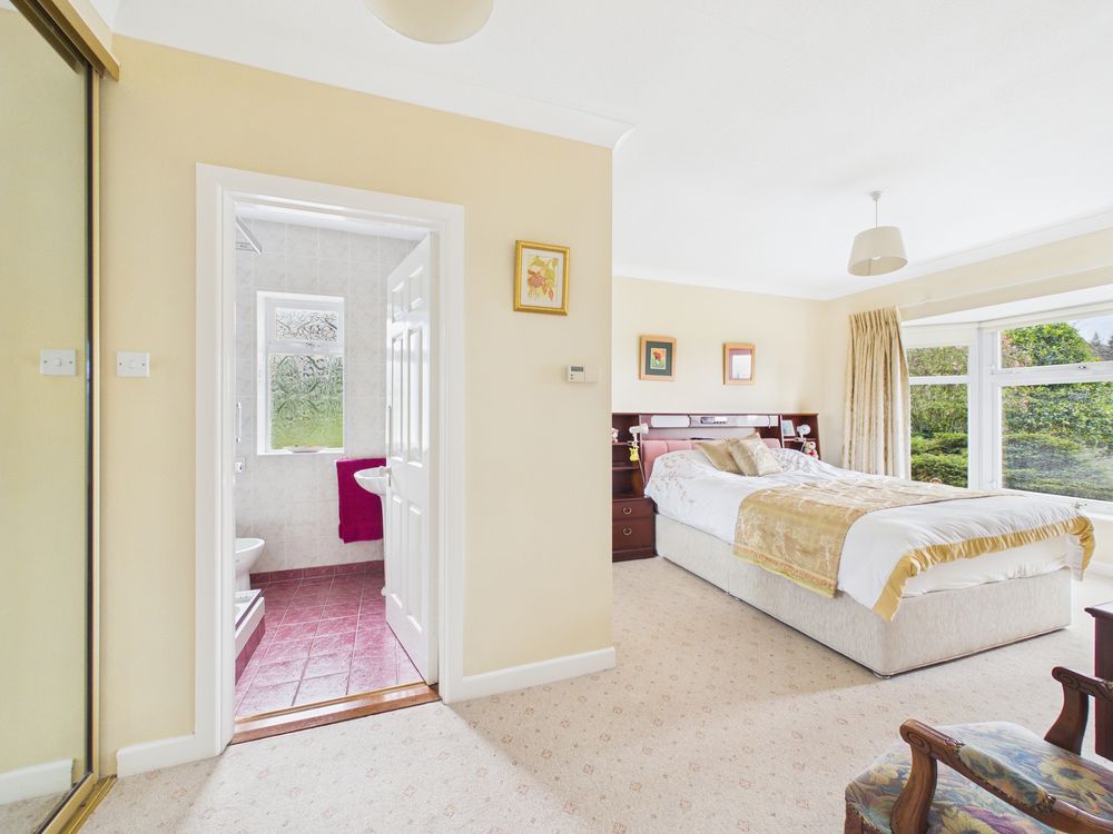 The bedroom accommodation is thoughtfully positioned along a separate wing, ensuring privacy and comfort. The principal bedroom suite is generously proportioned and benefits from its own ensuite, while the remaining bedrooms are all spacious and well-appointed. Each bedroom enjoys exceptional wardrobe space. A large family bathroom completes the accommodation.