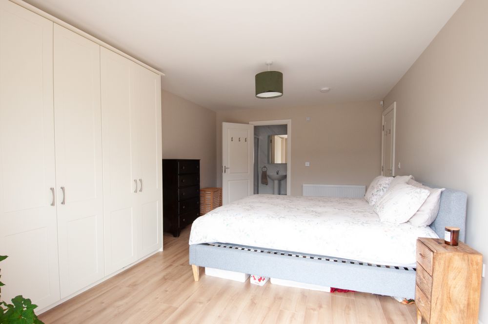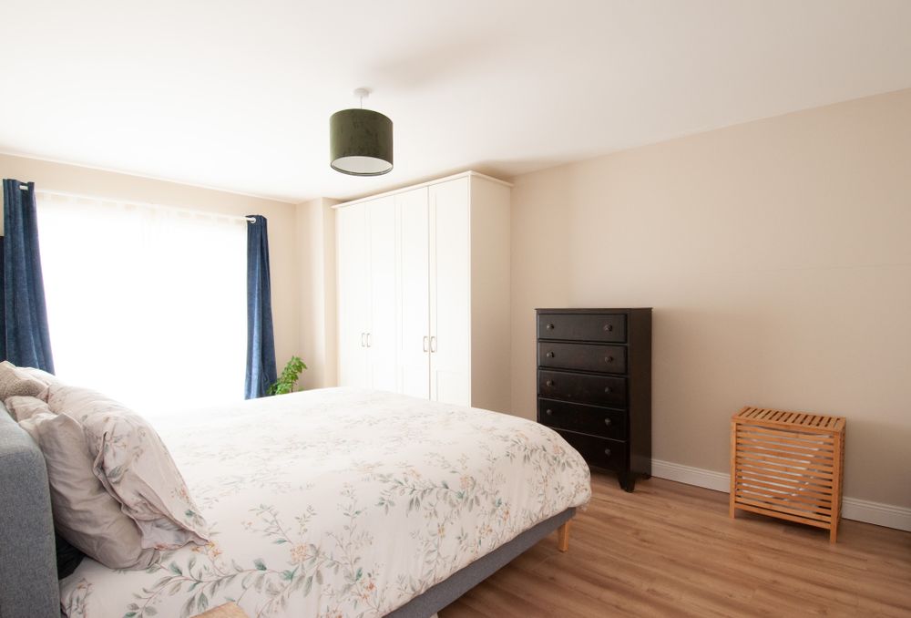 Laminate wood flooring, wardrobe