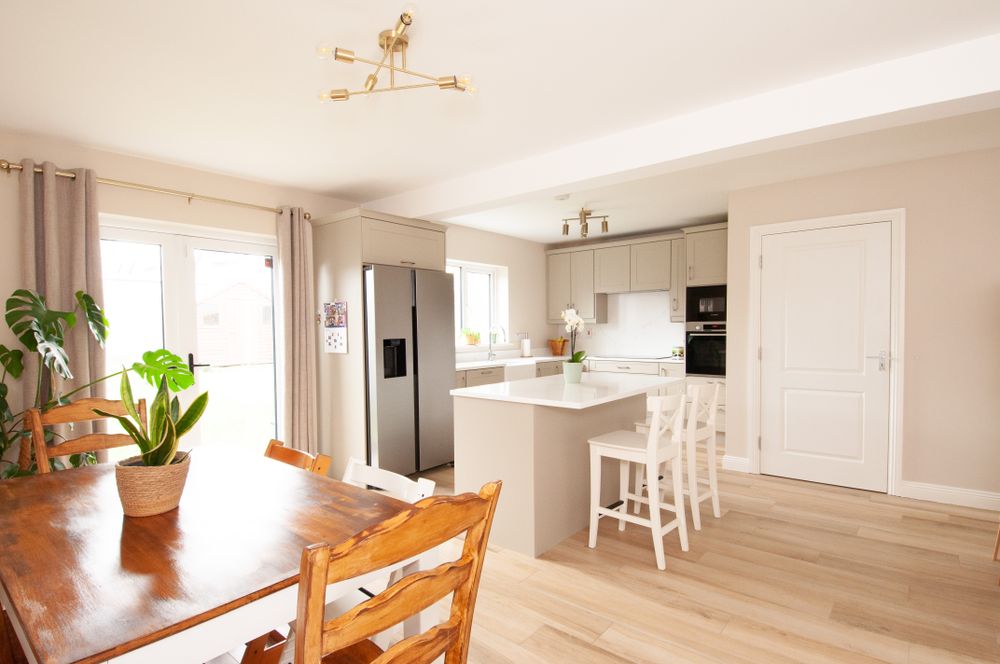Upon entering the home, you are greeted by beautifully finished tiled wood effect flooring that flows seamlessly throughout the ground floor, complemented by the comfort of underfloor heating. The property benefits from triple glazed windows, ensuring excellent insulation and energy efficiency all year round.