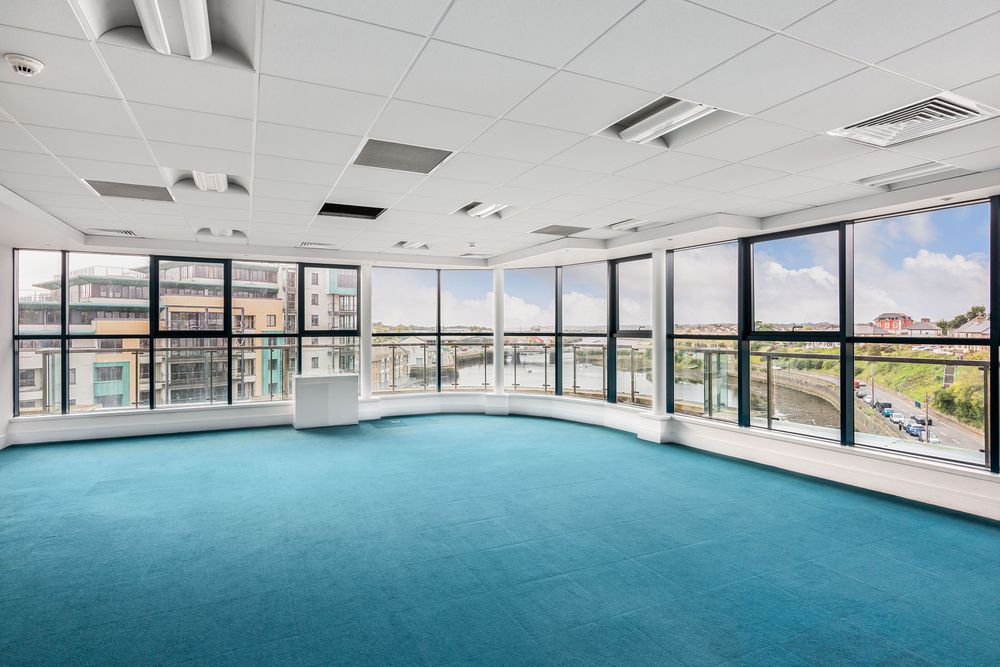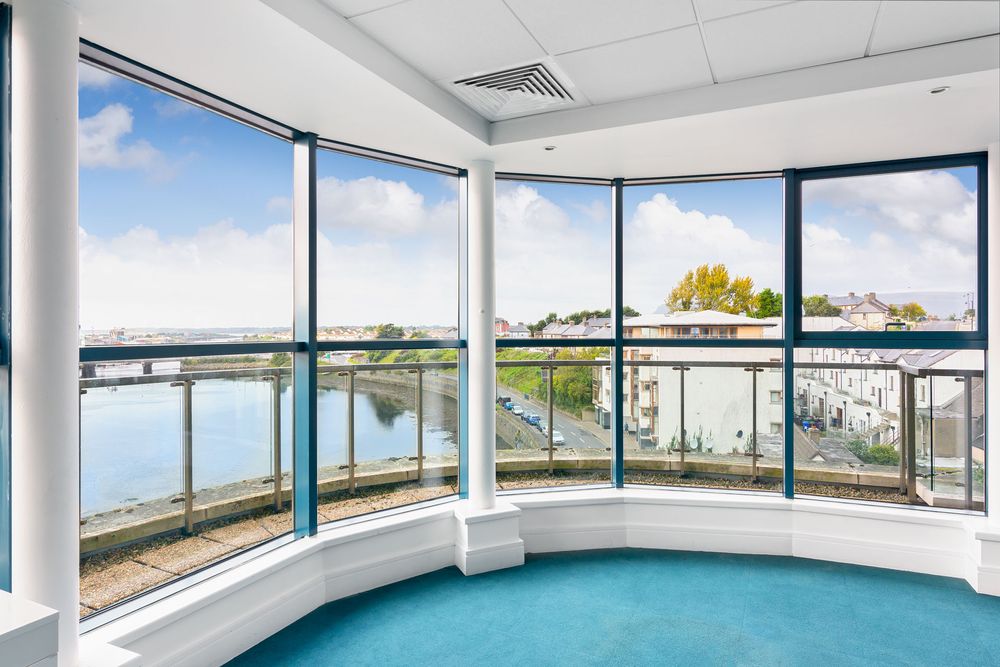 The top floor space which is available for lease boasts breath-taking views from its elevated position, across the Garavogue River as it meets Sligo Bay.