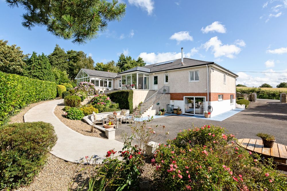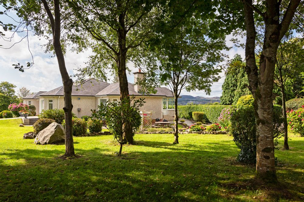 Rarely does such an impressive home come to the market situated on a large well landscaped & mature site with beautiful elevated southwest facing views of Ballisodare Bay & the rolling views of the Ox mountains. This elegant and attractive substantial home has been cared for by its present owner to exacting standards throughout. The accommodation extends to approximately 352.6 sq.m ( 3795 sq.f.) and comprises on the ground level of a welcoming entrance porch, sizeable hallway, cosy sitting room with fireplace, spacious drawing room with fireplace that links well with both the conservatory & formal dining room, sunny south west facing conservatory with high glass window facing the stunning views, formal dining room with beautiful views, kitchen / dining room with extensive range of high quality units, island, granite worktop & integrated appliances & a smaller dining area with floor to ceiling windows with views of Ballisodare Bay & the Ox Mountains, utility room / back hallway with staircase to lower level & a door to the rear, three sizeable bedrooms (two with ensuites) and a spacious well equipped house bathroom. On the lower level is a well presented one bedroom apartment which comprises of inner hallway / office, large laundry room with plumbing for washing machine & dryer, separate wc, spacious kitchen / dining / living room with fitted kitchen units & sliding door to the car parking area & garden, double bedroom with ceiling lighting and a large ensuite bathroom. From the rear of the property you can enjoy beautiful views out across Ballisodare Bay and beyond to the rolling Ox mountains. The private grounds and landscaped gardens are the real jewel in the crown of this stunning property. Accessed through a substantial wall & pillared entrance the residence is nestled among mature trees and planting surrounded by high hedging giving great privacy with two paved patio areas ideal for alfresco dining linking well with the house itself. There is also ample tarmacadam car parking to the side and rear. The property also has a very impressive B3 energy rating. Situated on a quiet country road only 5km from Sligo City located in the heart of an area of outstanding natural beauty not far from Ransboro in close proximity to the popular seaside village of Strandhill. Ballisodare village is also only a short drive away. Viewing highly recommended to really appreciate the full extent of this substantial property and all it has to offer. To arrange a viewing contact Oates Breheny Group on 071-9140404.