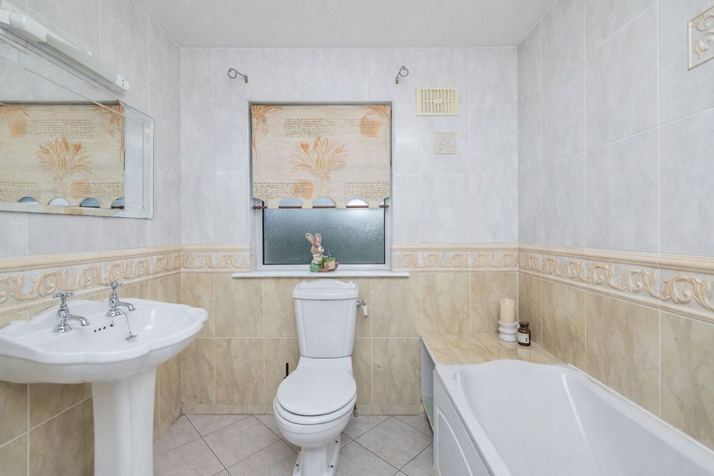 Fully tiled, w.c, w.h.b, bath with shower attachment.