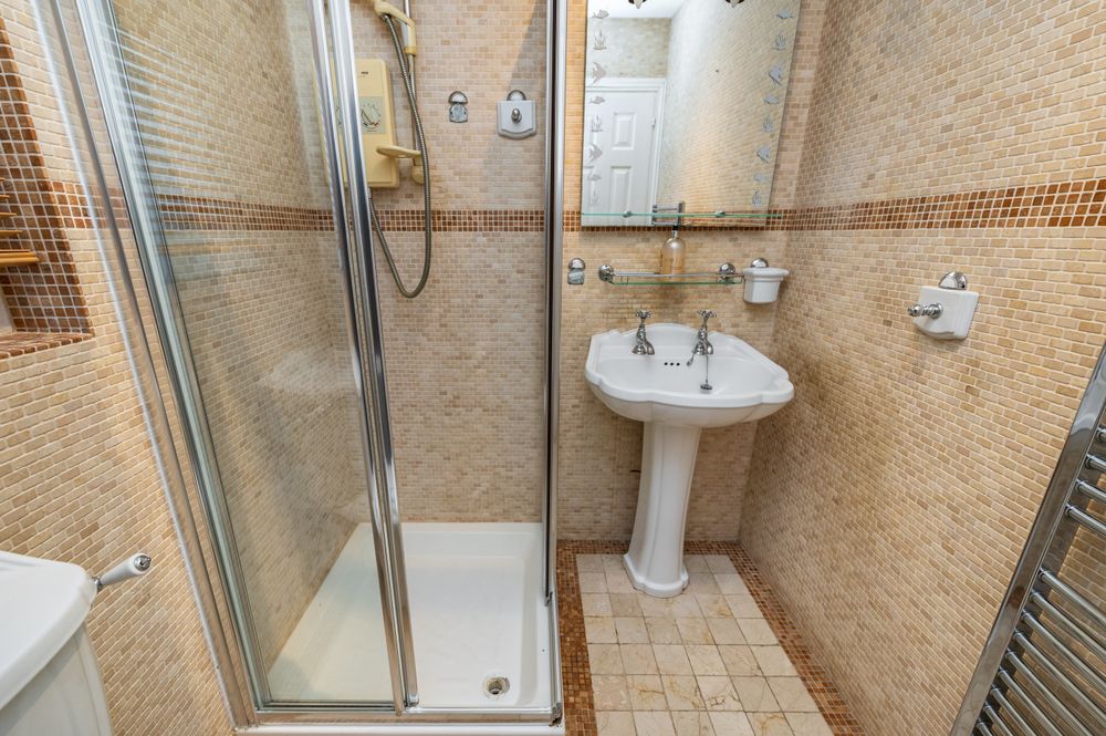 Fully tiled, w.c, w.h.b, shower.