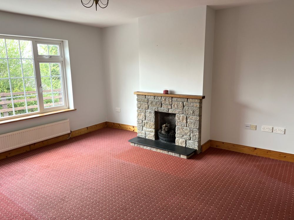 Feature stone fireplace, slate hearth , double doors to kitchen/diningroom
