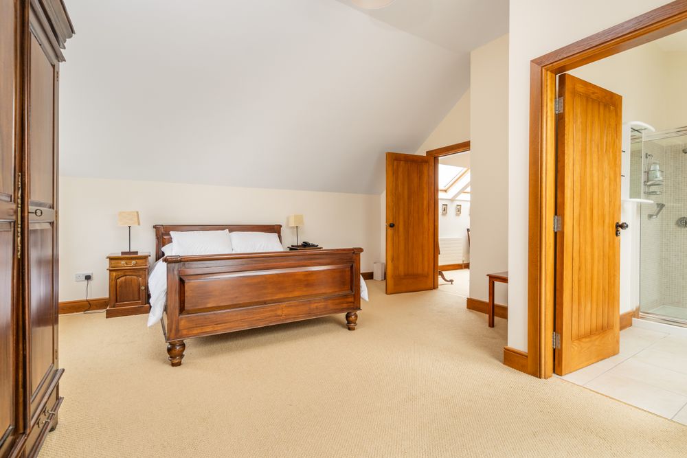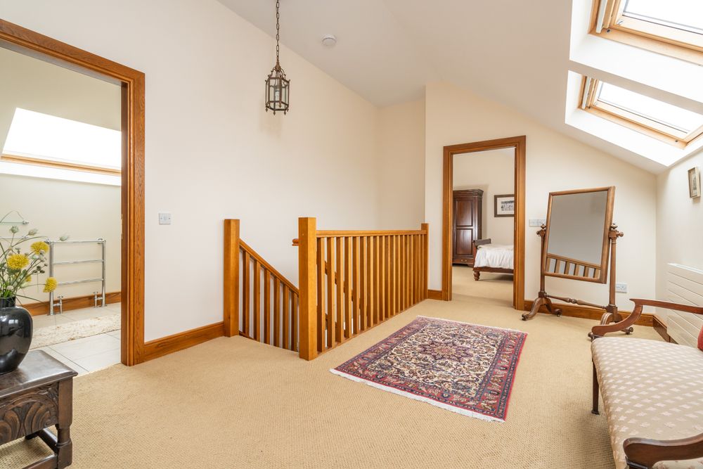 The bedroom accommodation is located on the first floor and includes a superb master bedroom suite. Two further double bedrooms complete the layout, alongside a well-appointed family bathroom and additional storage.