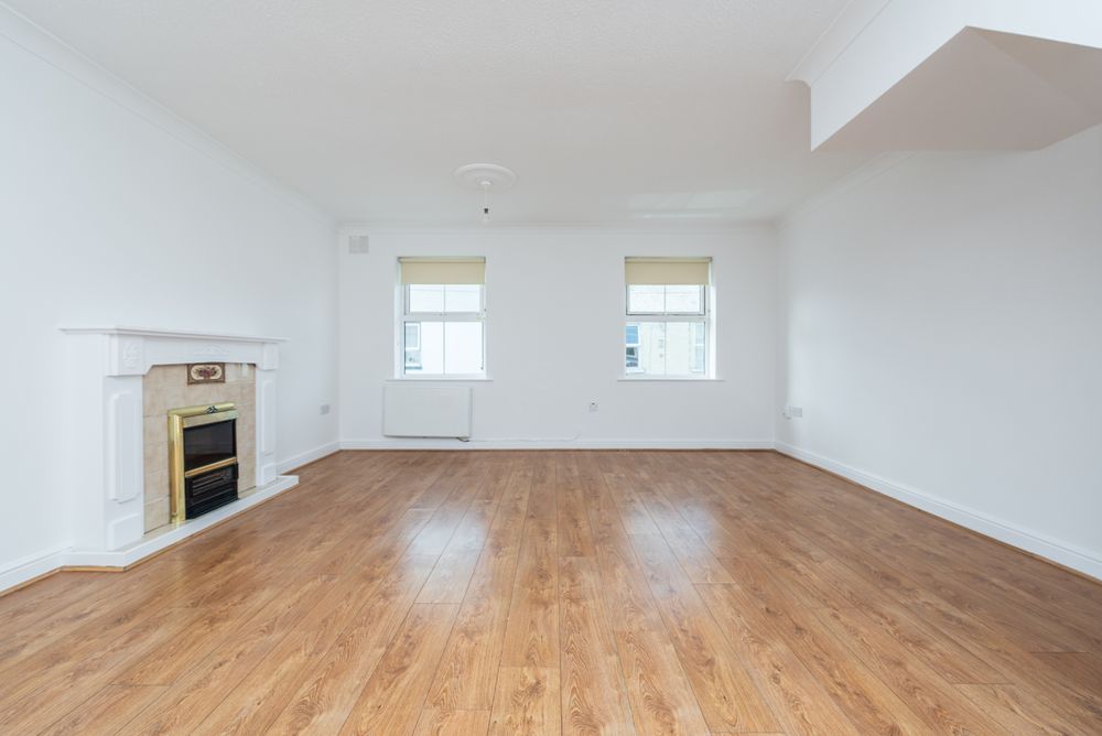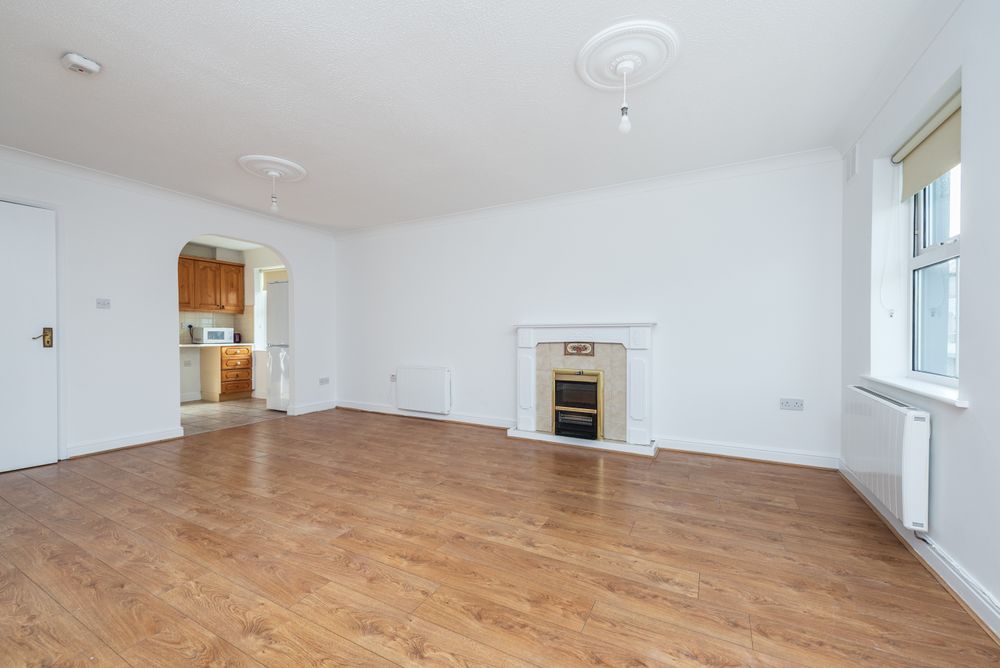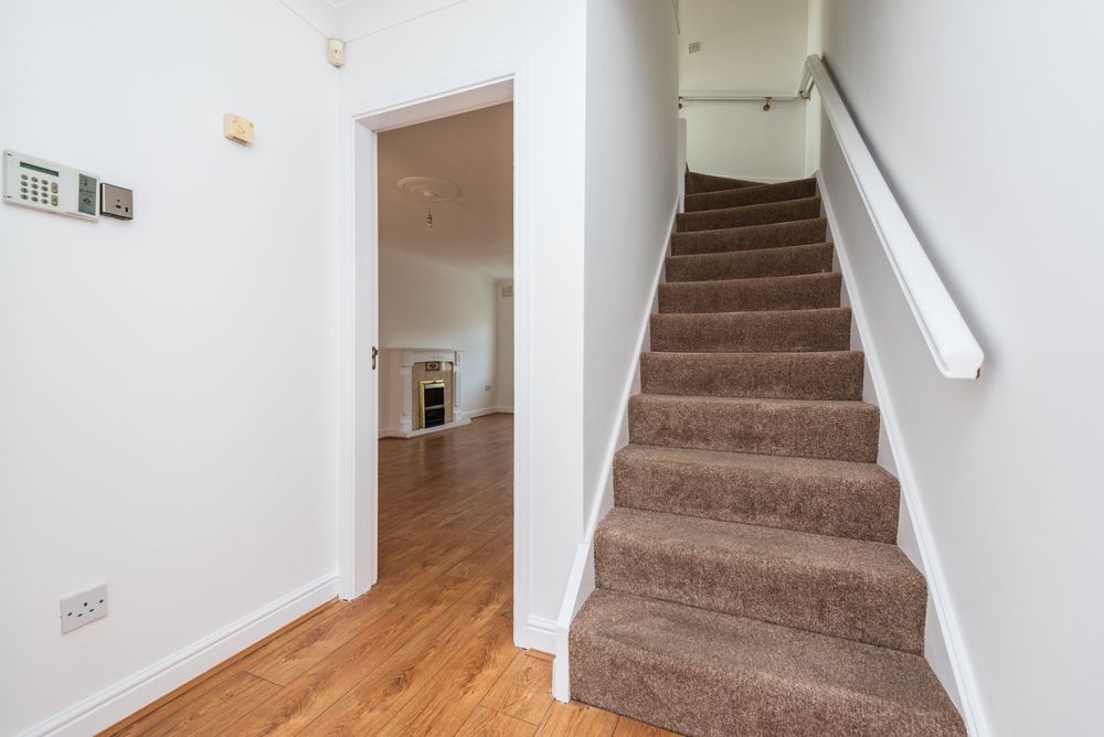 With laminate flooring, electric fireplace, coving, under stairs storage.