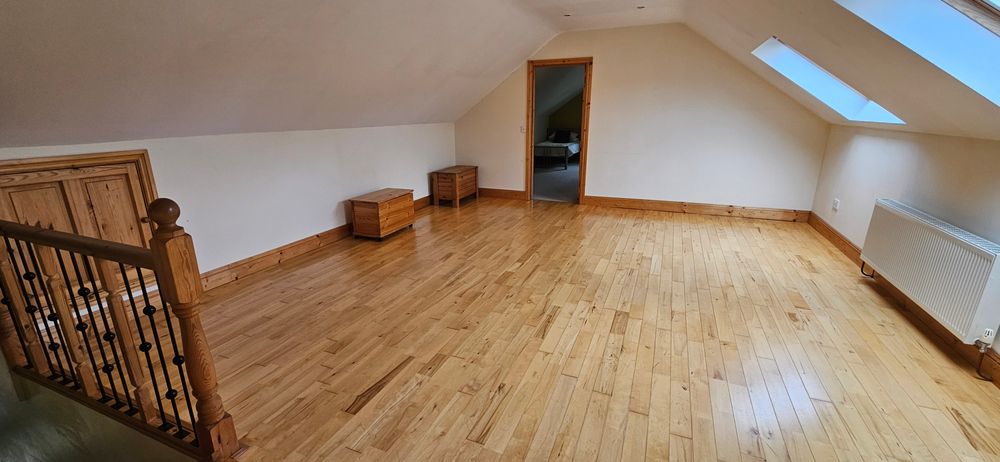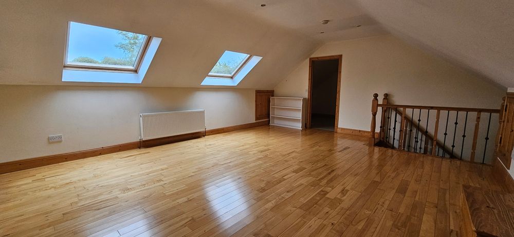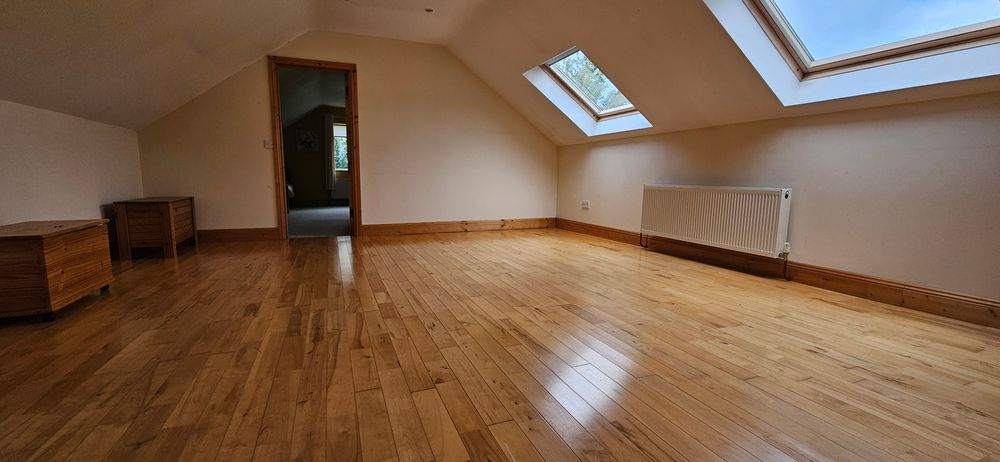 Maple flooring, large useful space with 2 storage access to side attics, radiator, 2 x velux windows.
