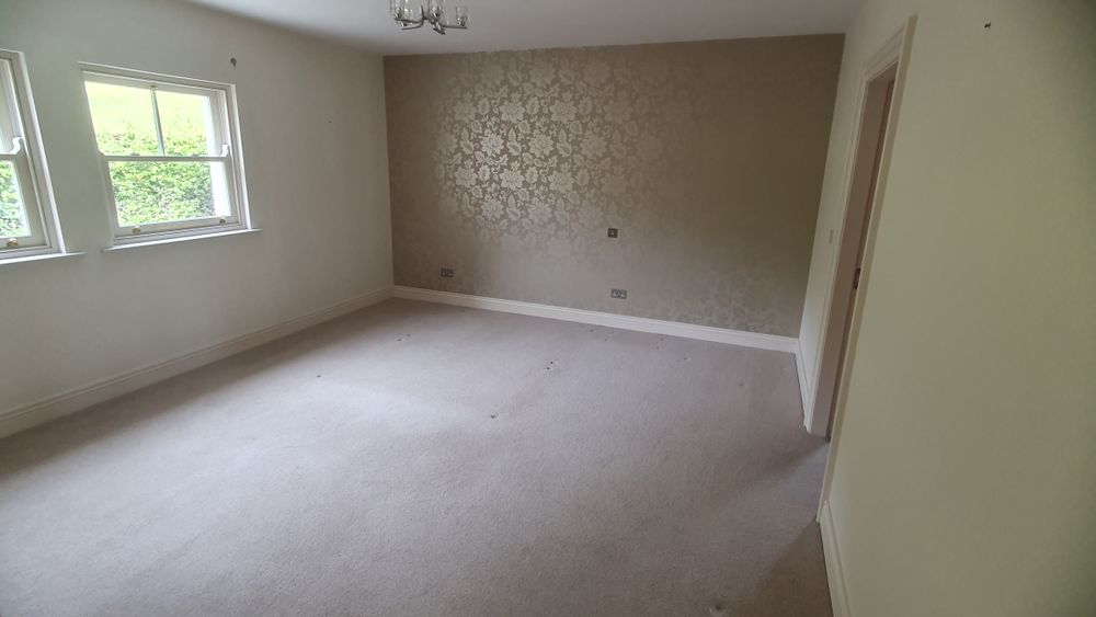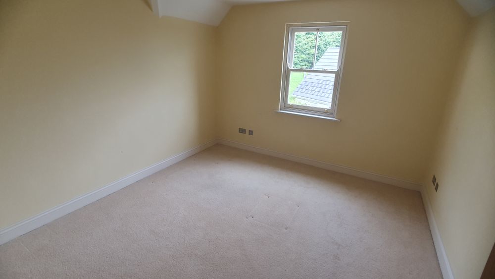 Open fire with timber surround and stone hearth, T.V. Point, coving to ceiling