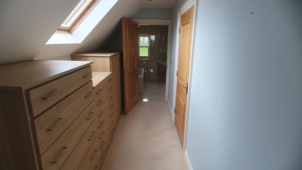 Walk in wardrobe, Ensuite with W.C., W.H.B., Shower, tiled walls and floor