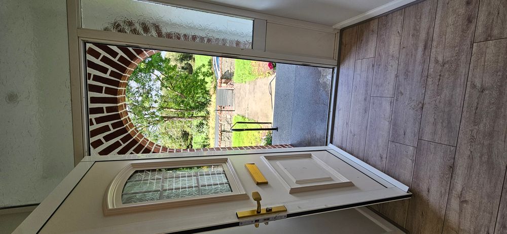 Entrance Hallway with vinyl flooring, pvc front door, phone point, radiator.