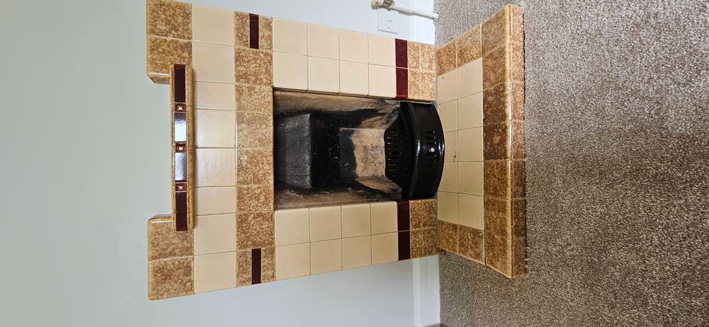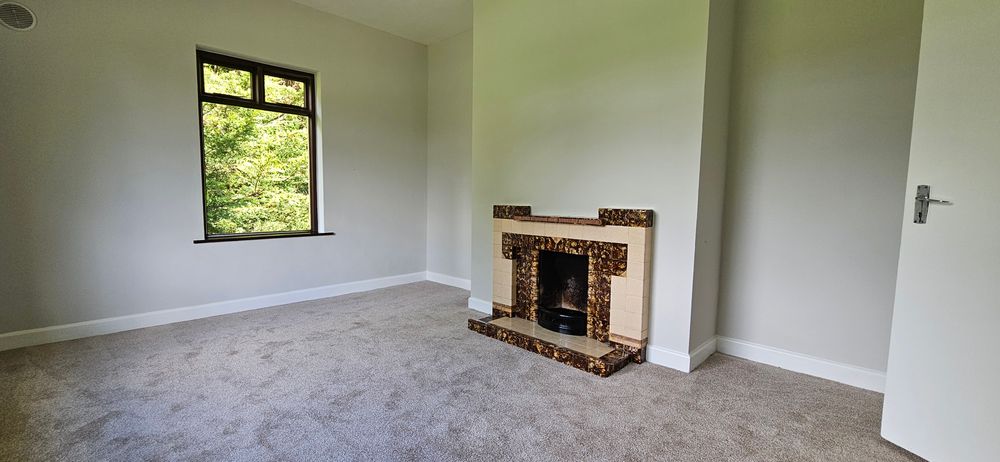 Bedroom with new carpet, radiator, power points, tiled open fireplace.