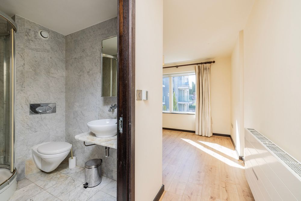Sumptuous luxurious bedroom with wonderful aspect overlooking the Italian roof garden, the room features a walk in wardrobe and superb ensuite shower room which features extensive marble tiling, high quality sanitary ware including wc, wash hand basin and corner shower cubicle plus built in mirrored door vanity unit providing ample storage.