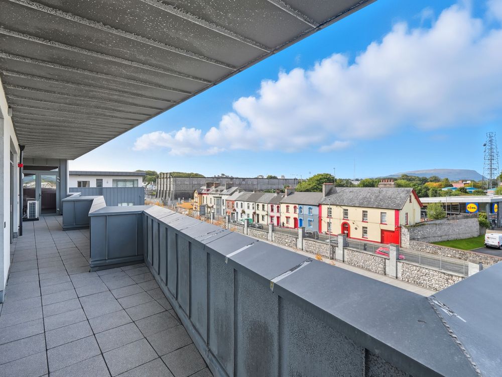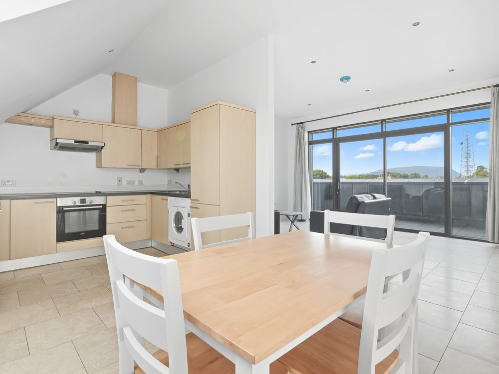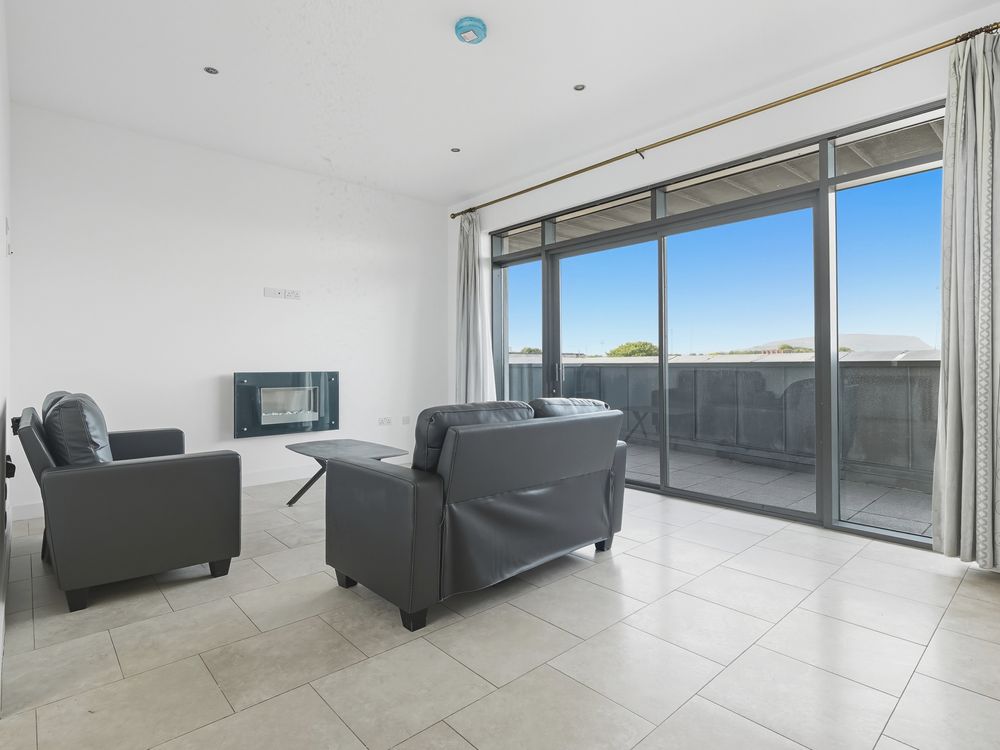 Exceptionally bright 2 bed penthouse apartment in Sligo towns most attractive apartment complex. Wonderful views from the living area and there is a spacious kitchen/dining area. Car park space included.